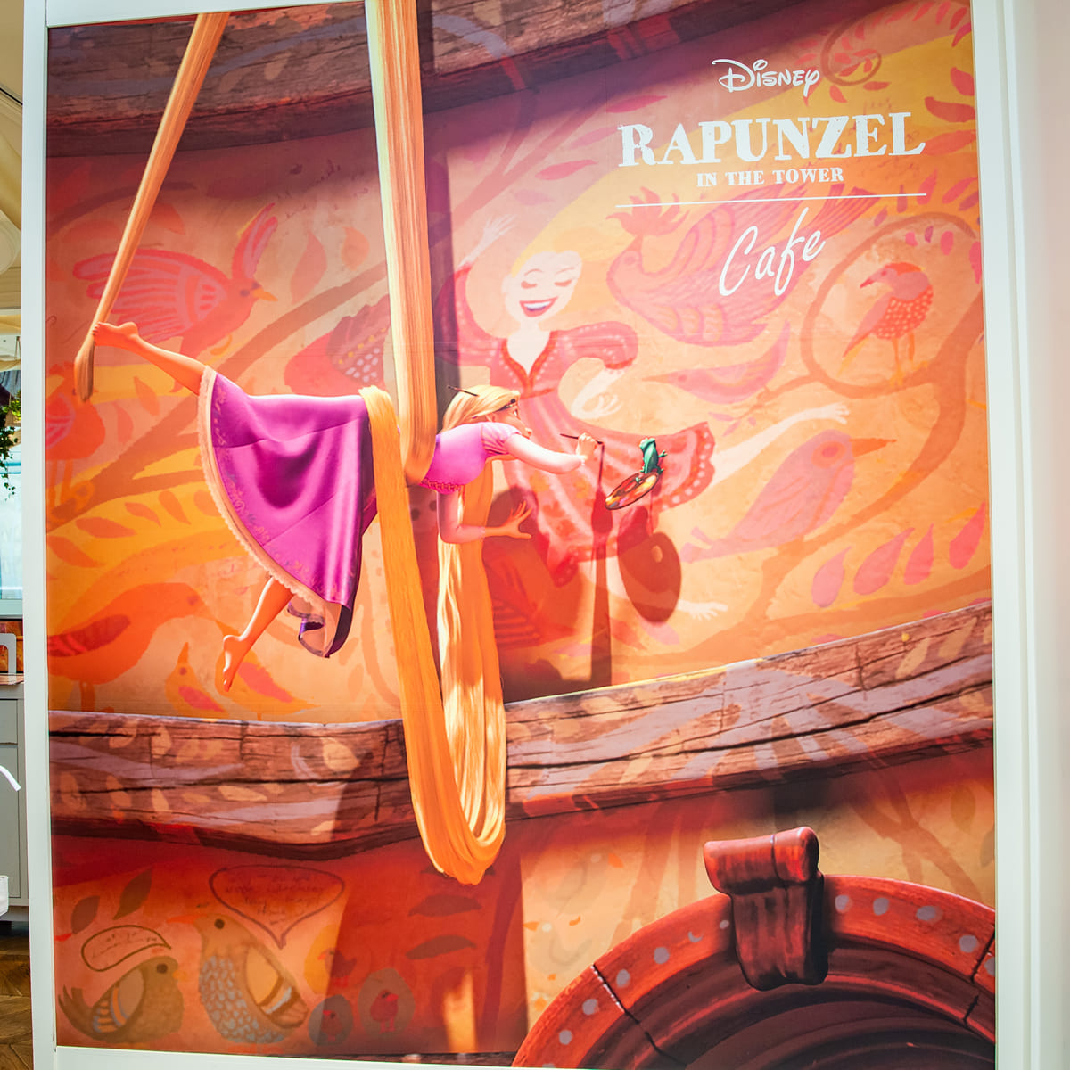 カフェは「ラプンツェル」が18年間を過ごした “塔の中”がテーマ。