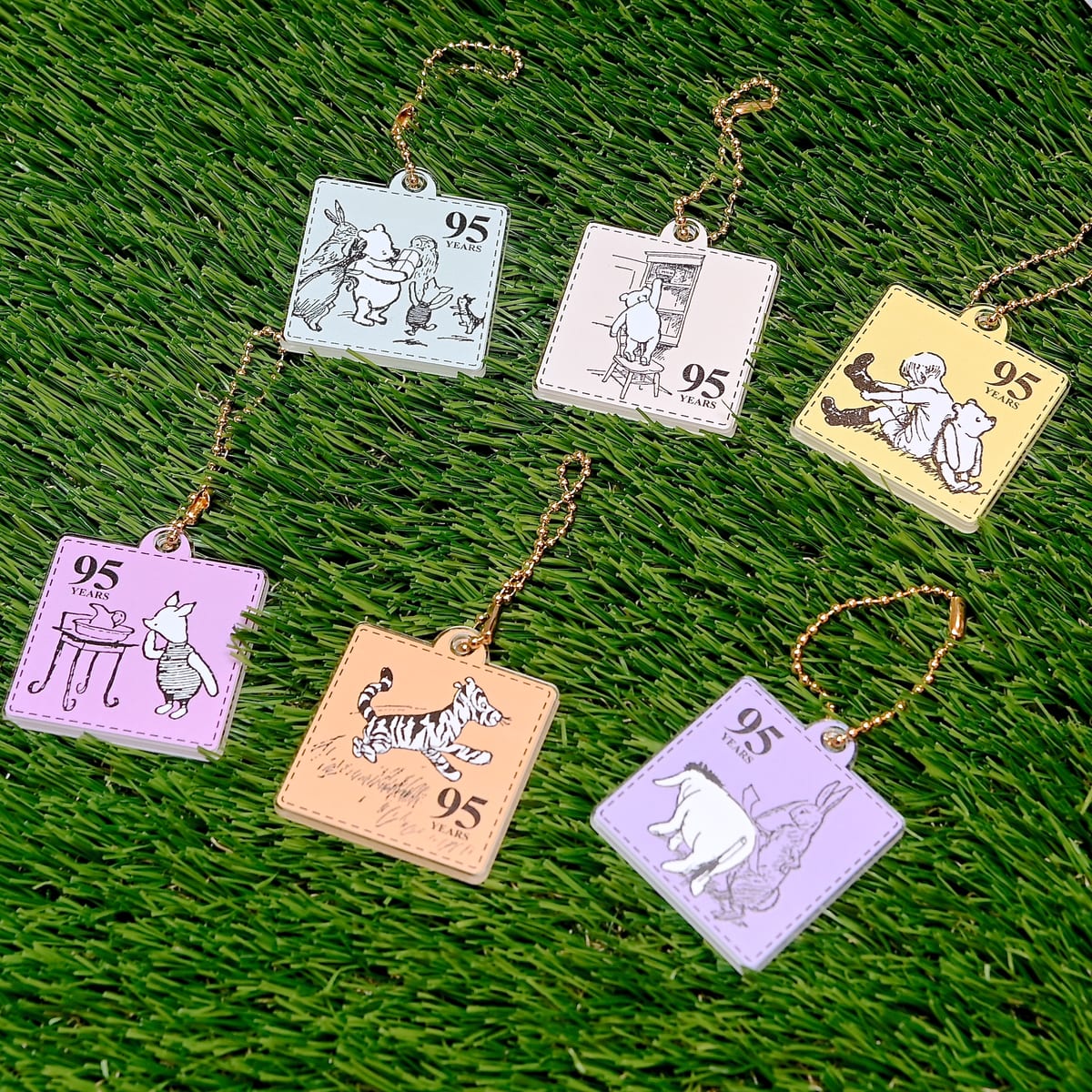 クラシックプーのイラストがかわいいスクエアタイプのアクリルキーホルダー。