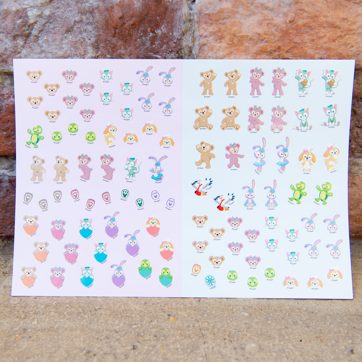 ダッフィー、シェリーメイが3絵柄ずつ、ジェラトーニ、ステラ・ルーが2絵柄ずつ、クッキー・アン、オル・メルが1絵柄ずつデザインされています。