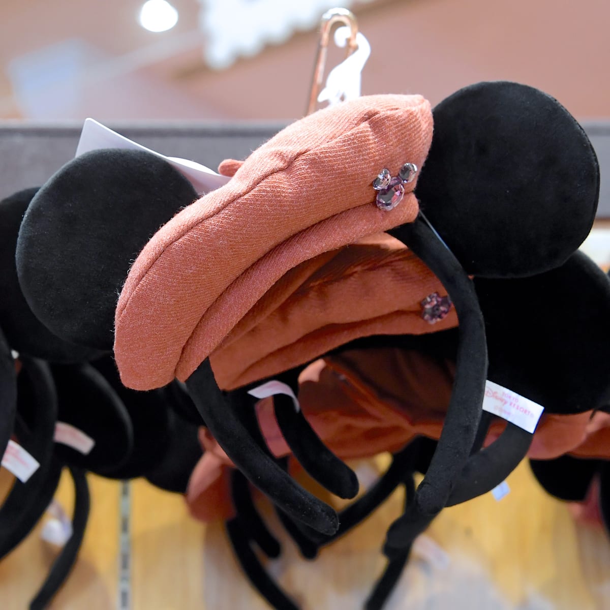 ミッキーシェイプのストーン付きのベレー帽がポイントのカチューシャ。