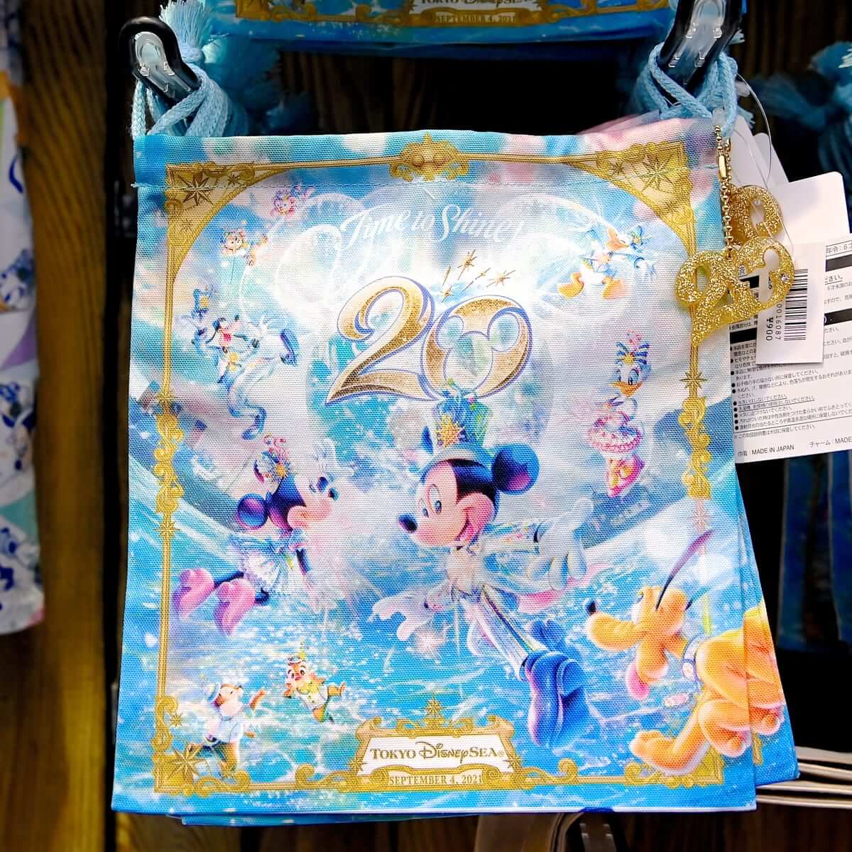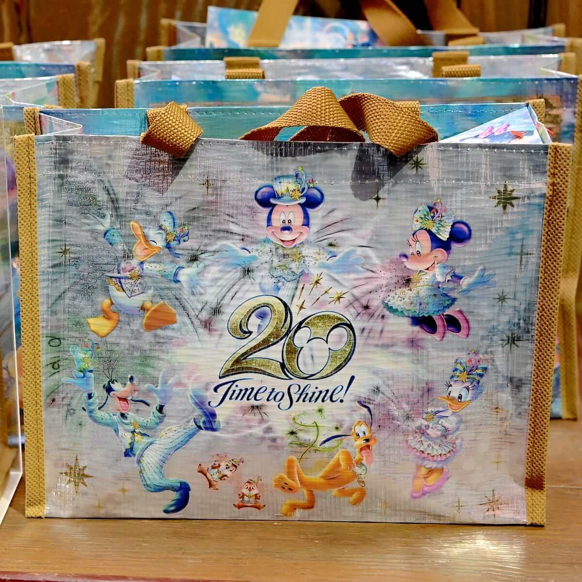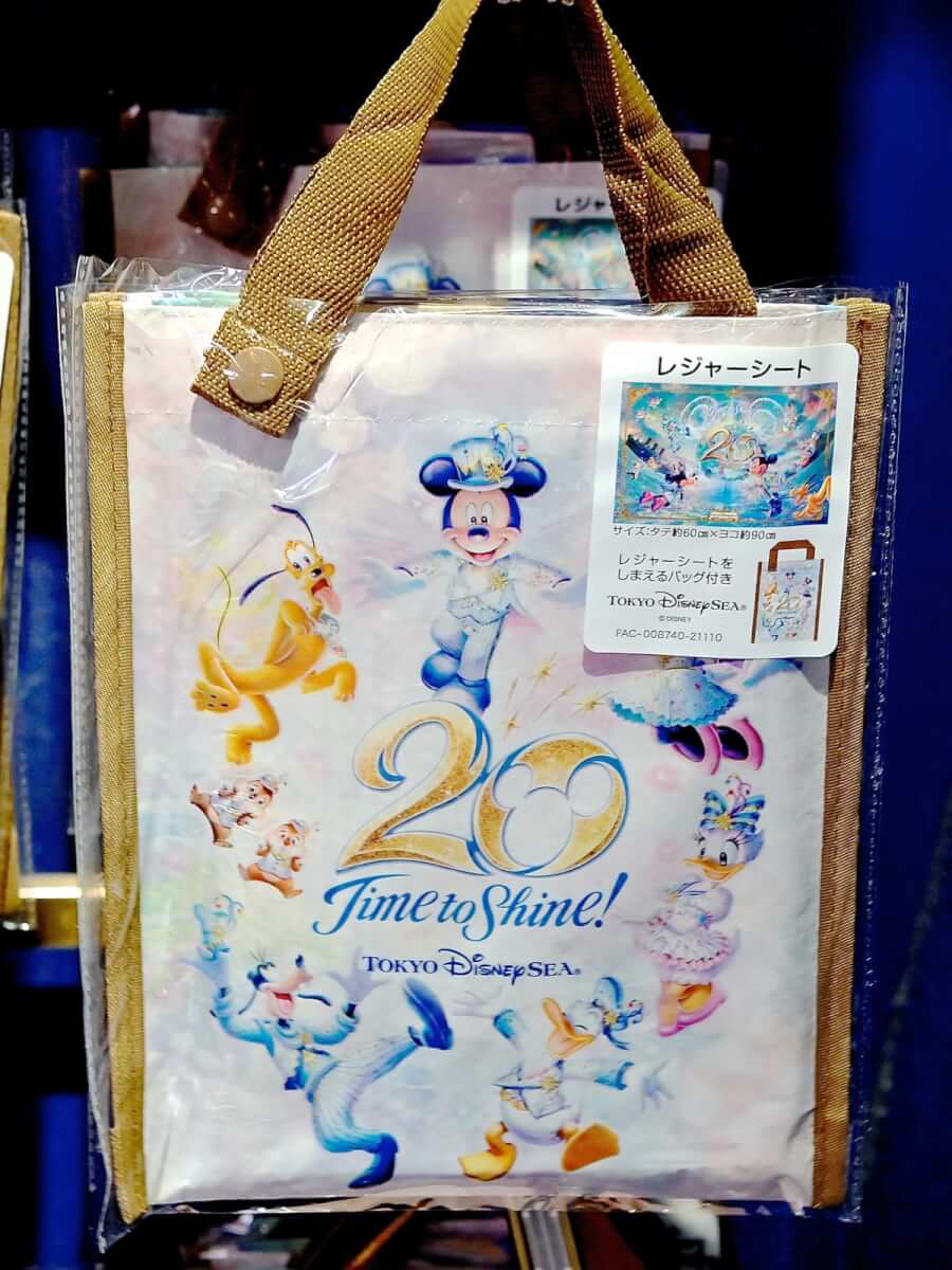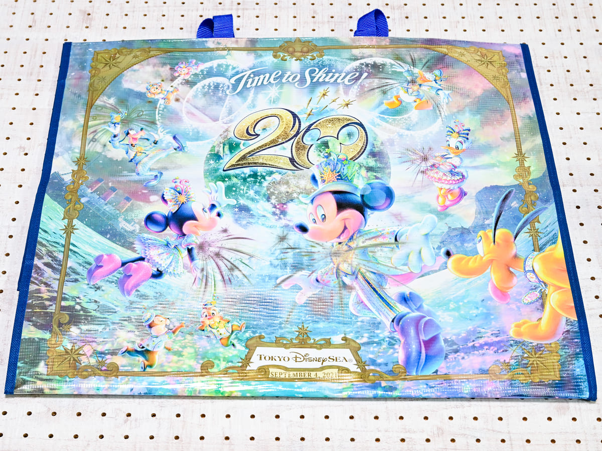 東京ディズニーシー20周年:タイム・トゥ・シャイン!のメインアートがデザインされたショッピングバッグ2種。