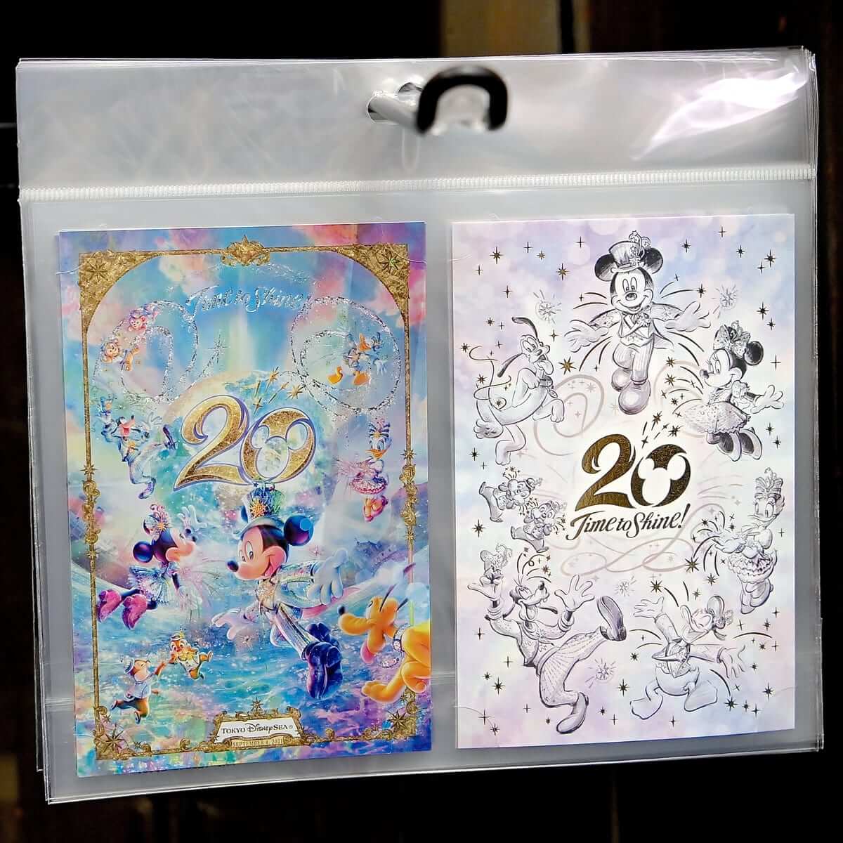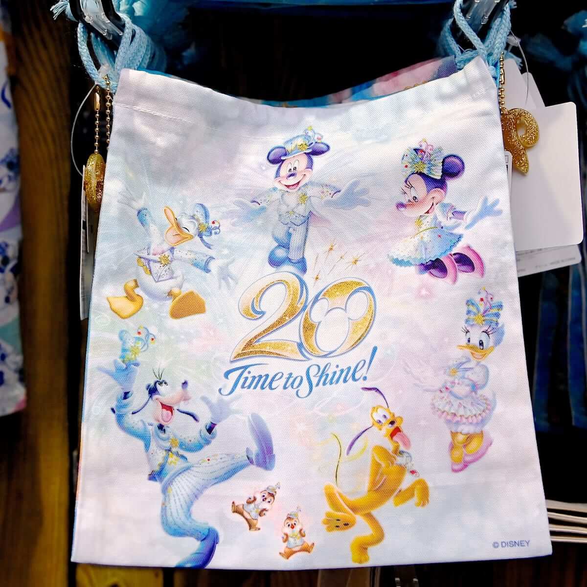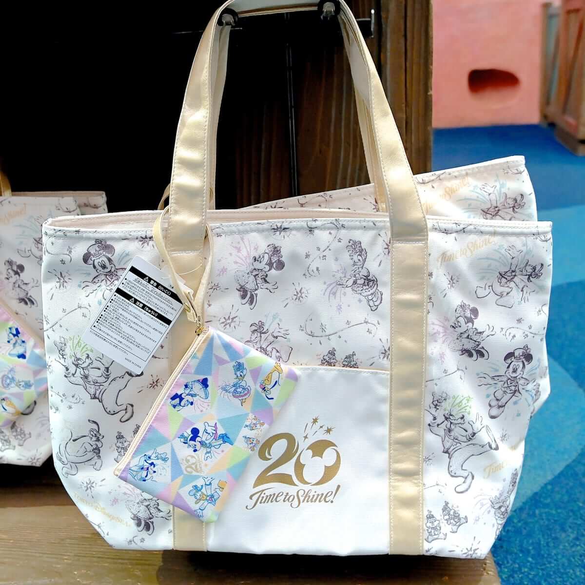 東京ディズニーシー20周年:タイム・トゥ・シャイン!のメインアートがデザインされたショッピングバッグ2種。