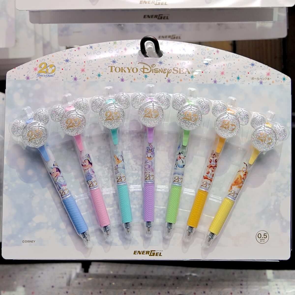 20周年のキラキラマスコットが付いたボールペン7本セット。