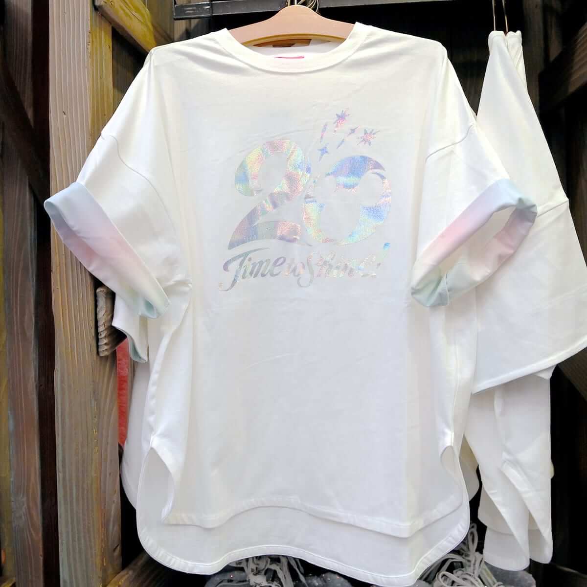オーロラプリントが華やかなロゴ、20Time to Shine!がデザインされたBIGシルエットTシャツ。