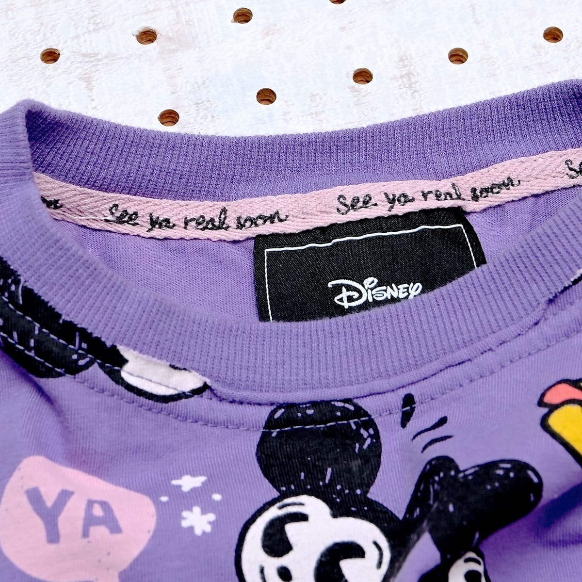 内生地はピンクにミッキーの総柄プリント。
