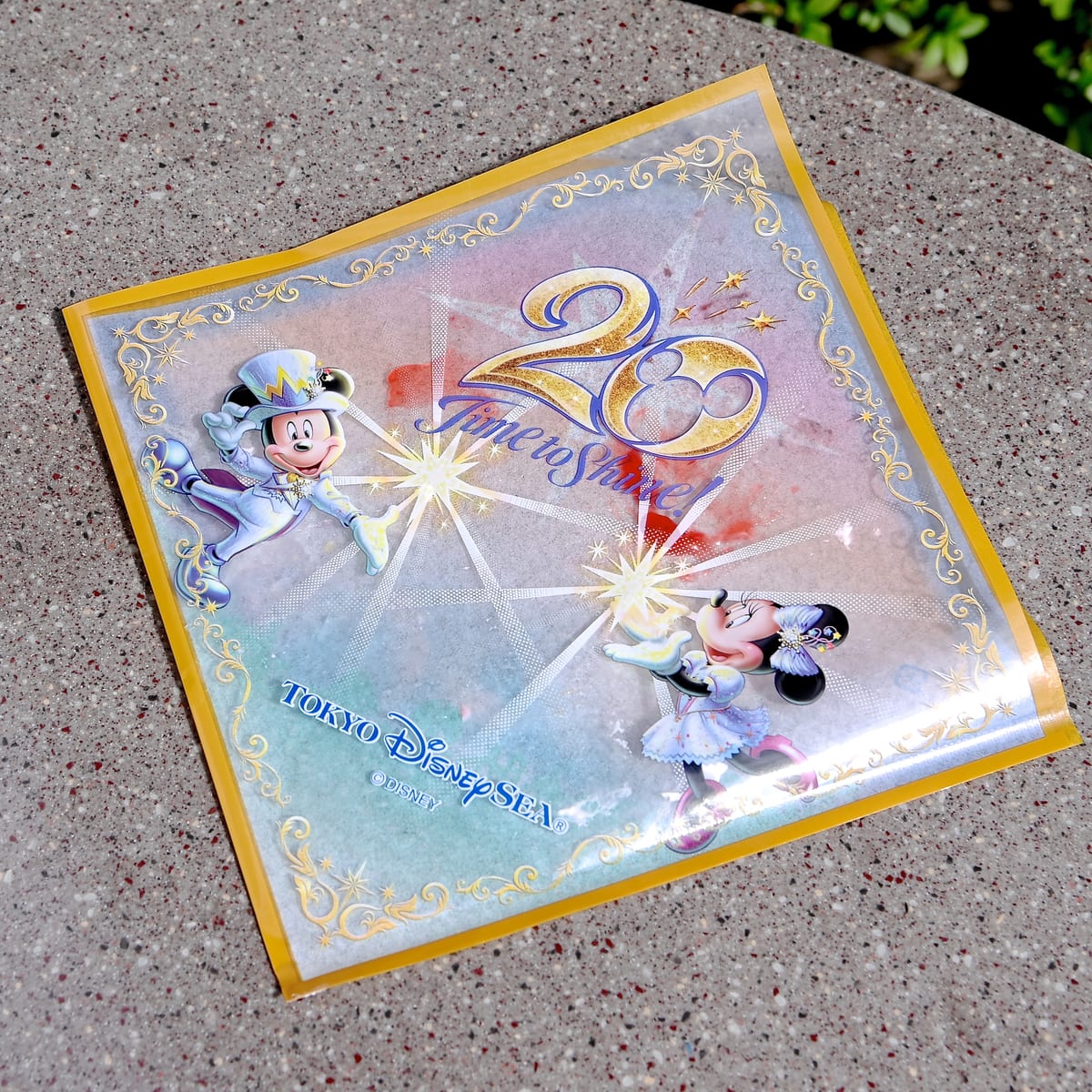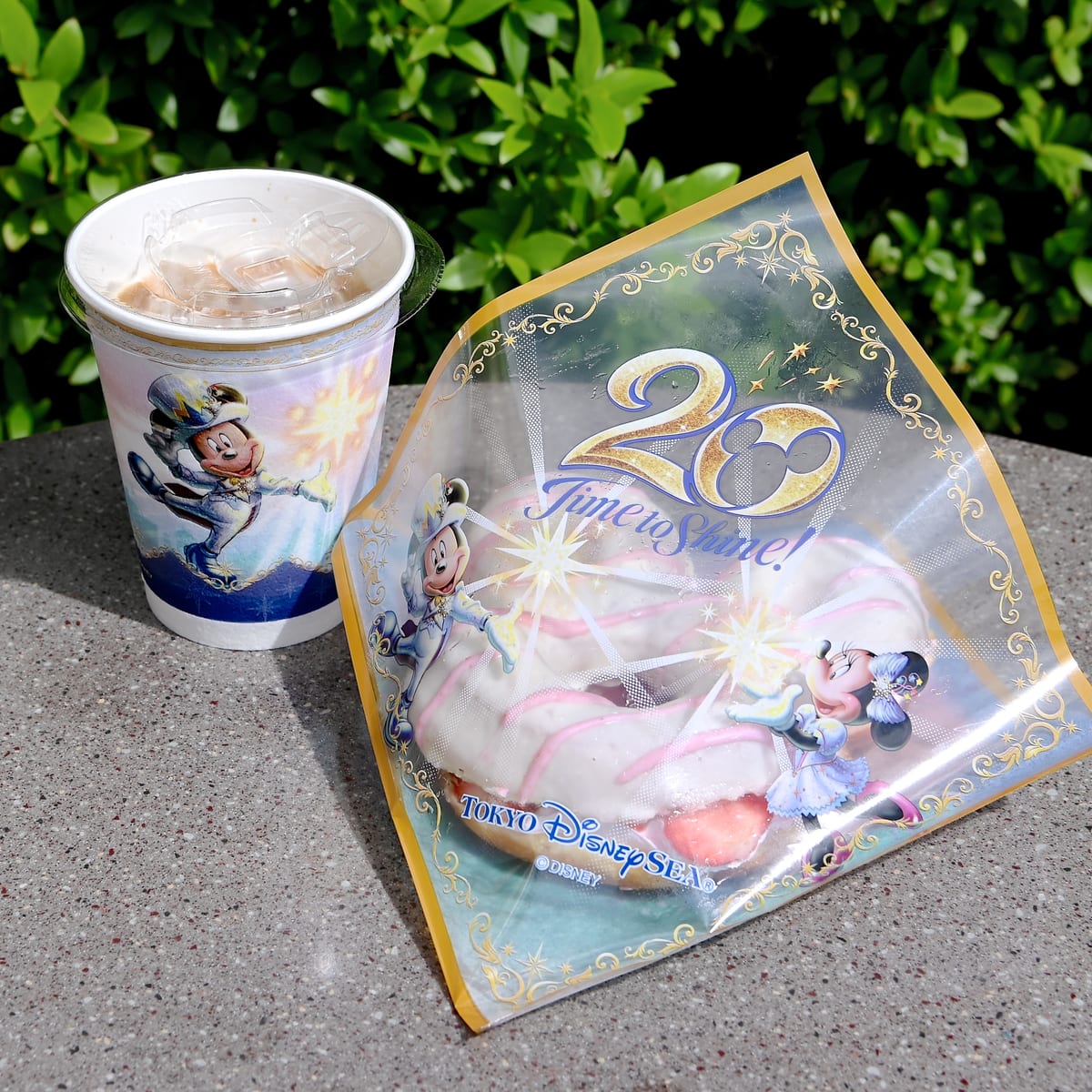 20周年デザインのパッケージには、20Time to Shime!のロゴ、キラキラなコスチュームを着たミッキーマウスとミニーマウスがデザインされています。