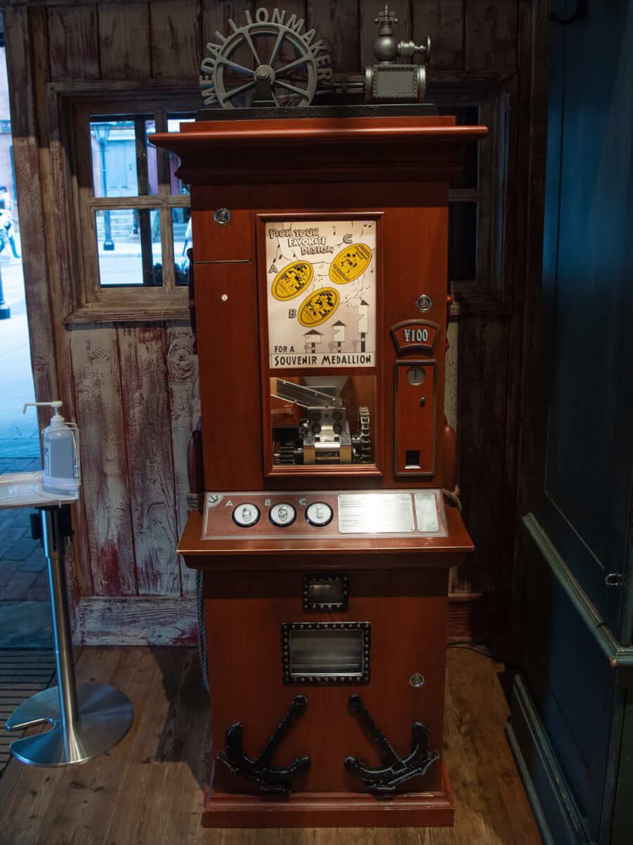 レストランやショップなどにあるスーベニアメダルマシーンで気軽に購入できるお土産グッズです。