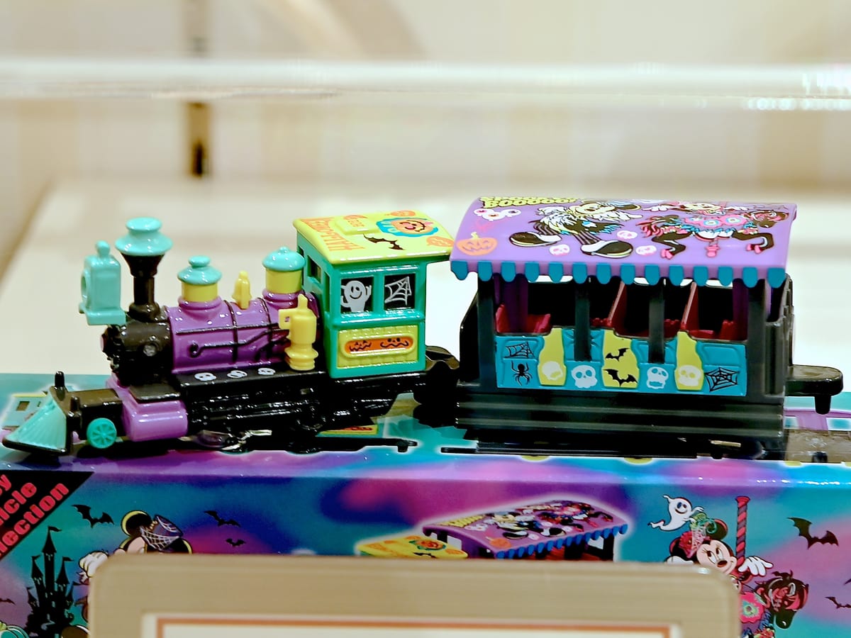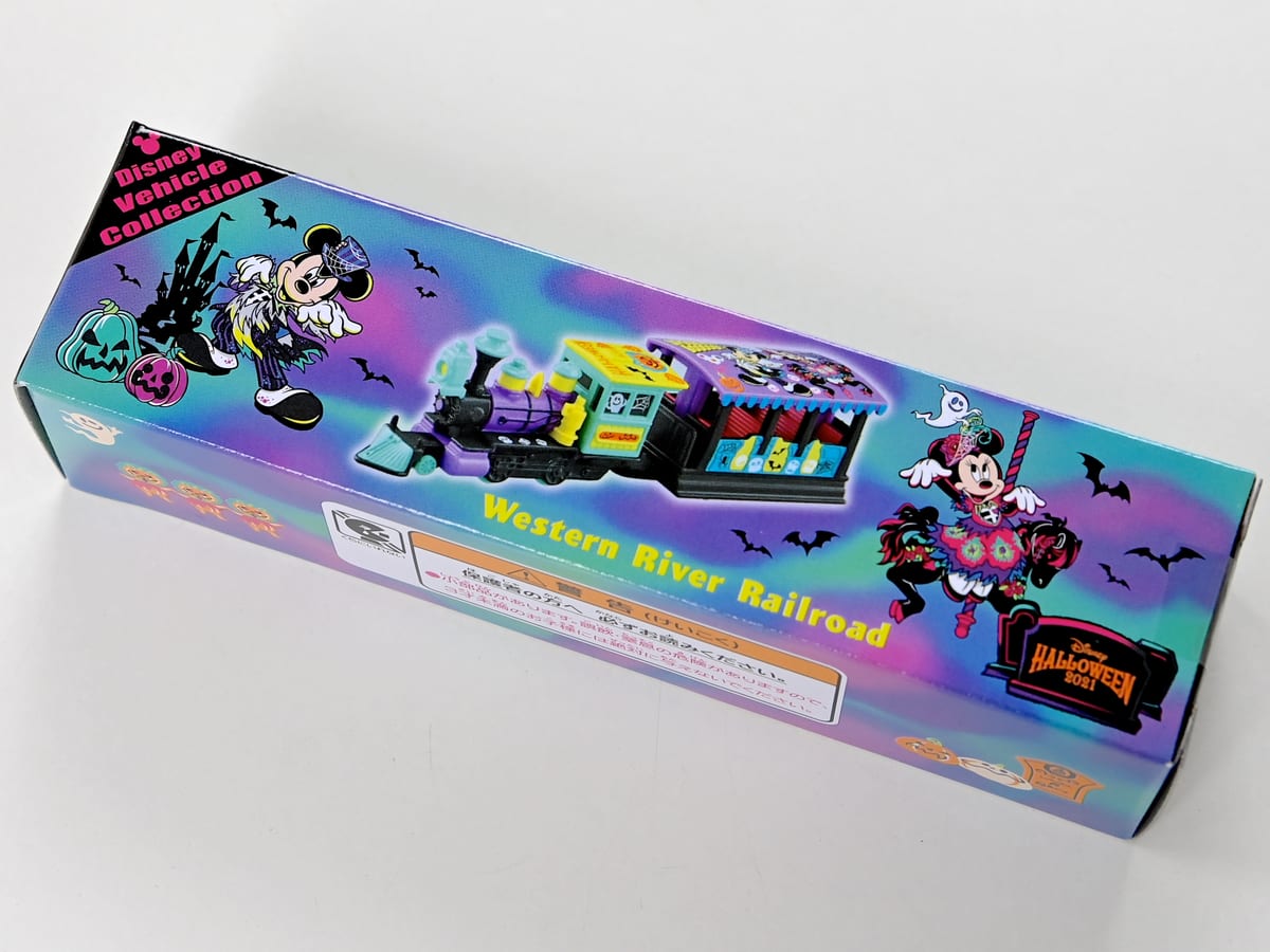 ウエスタンリバー鉄道がハロウィーンラッピングになったディズニー・ビークル・コレクション(トミカ)。