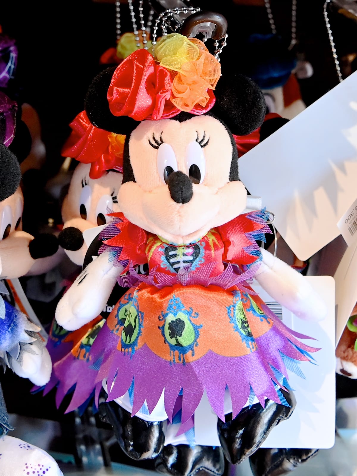 ミニーマウスもゴーストに仲間入りした後のコスチュームを着たぬいぐるみバッジ。