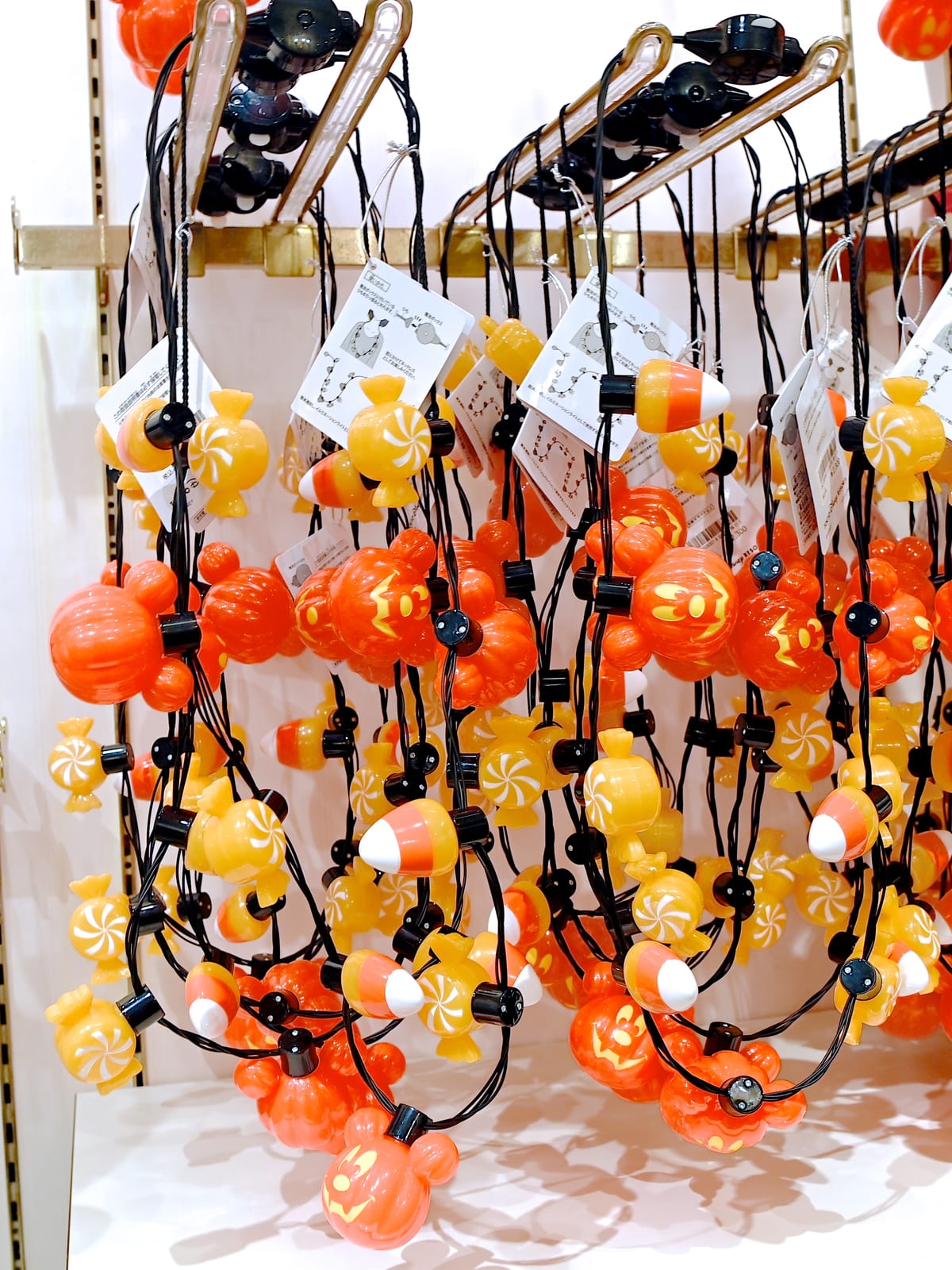 ジャック・オー・ランタンやキャンディーがデザインされた光るおもちゃ。