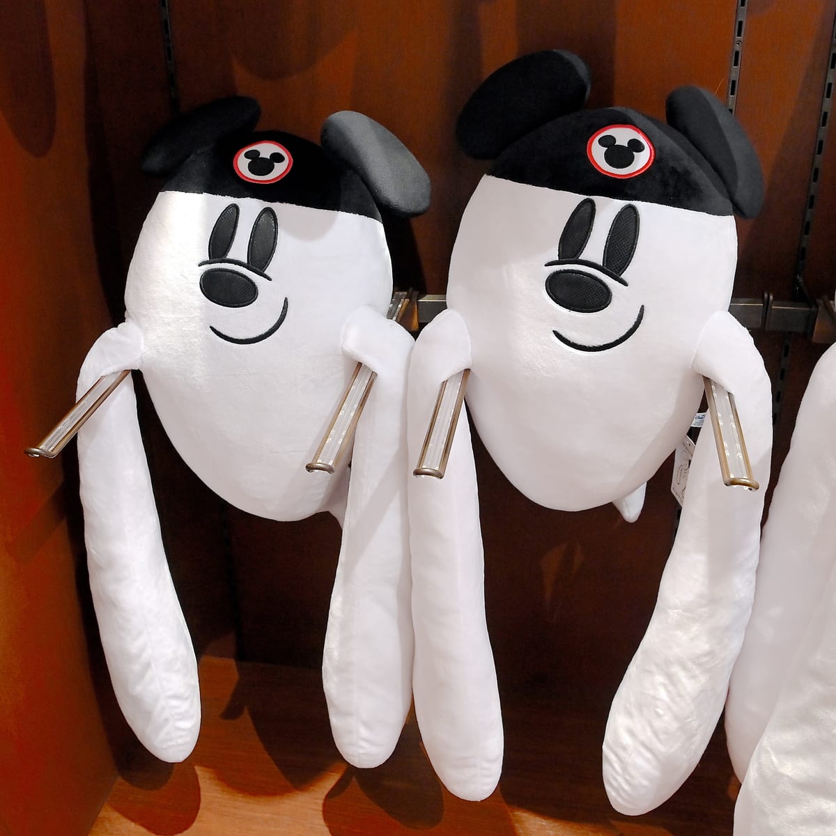 イヤーハットをかぶった大きなミッキーゴーストの肩のせぬいぐるみ。