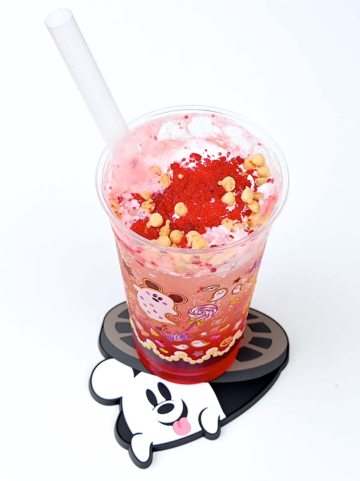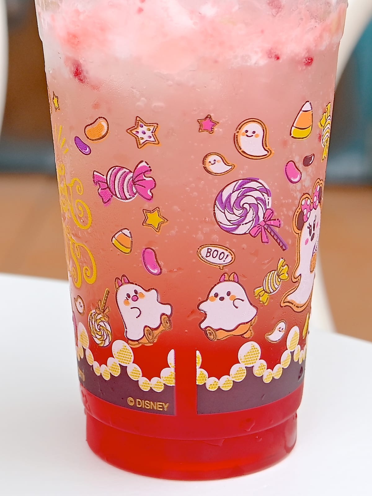 今回は東京ディズニーランドで提供がスタートしたハロウィーン限定ドリンクメニュー、スパークリングゼリードリンク(ライチー&チーズクリーム)を紹介します!