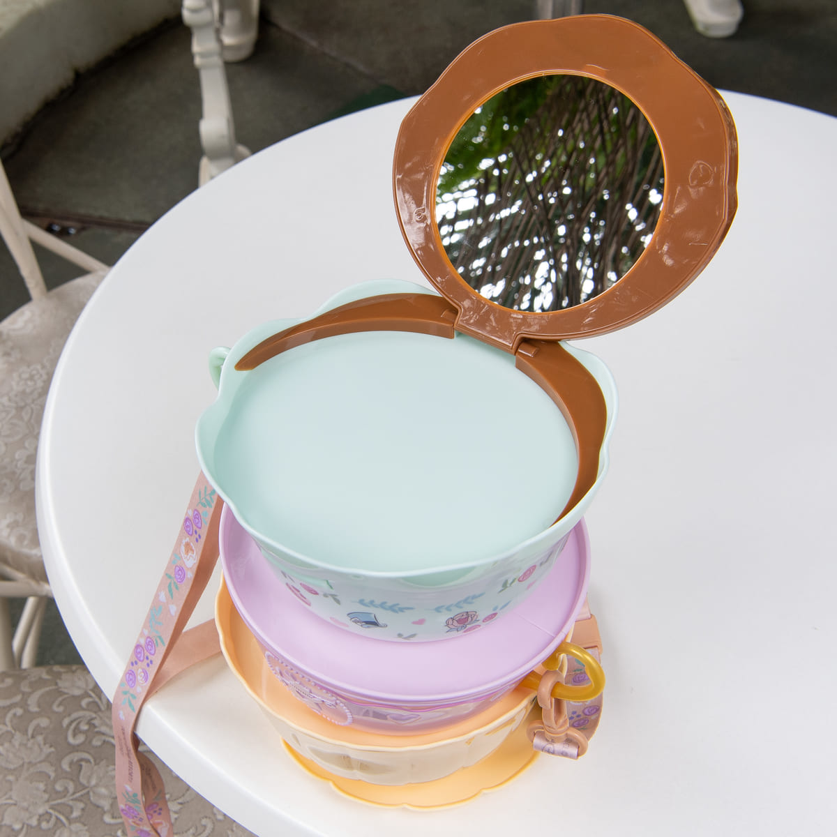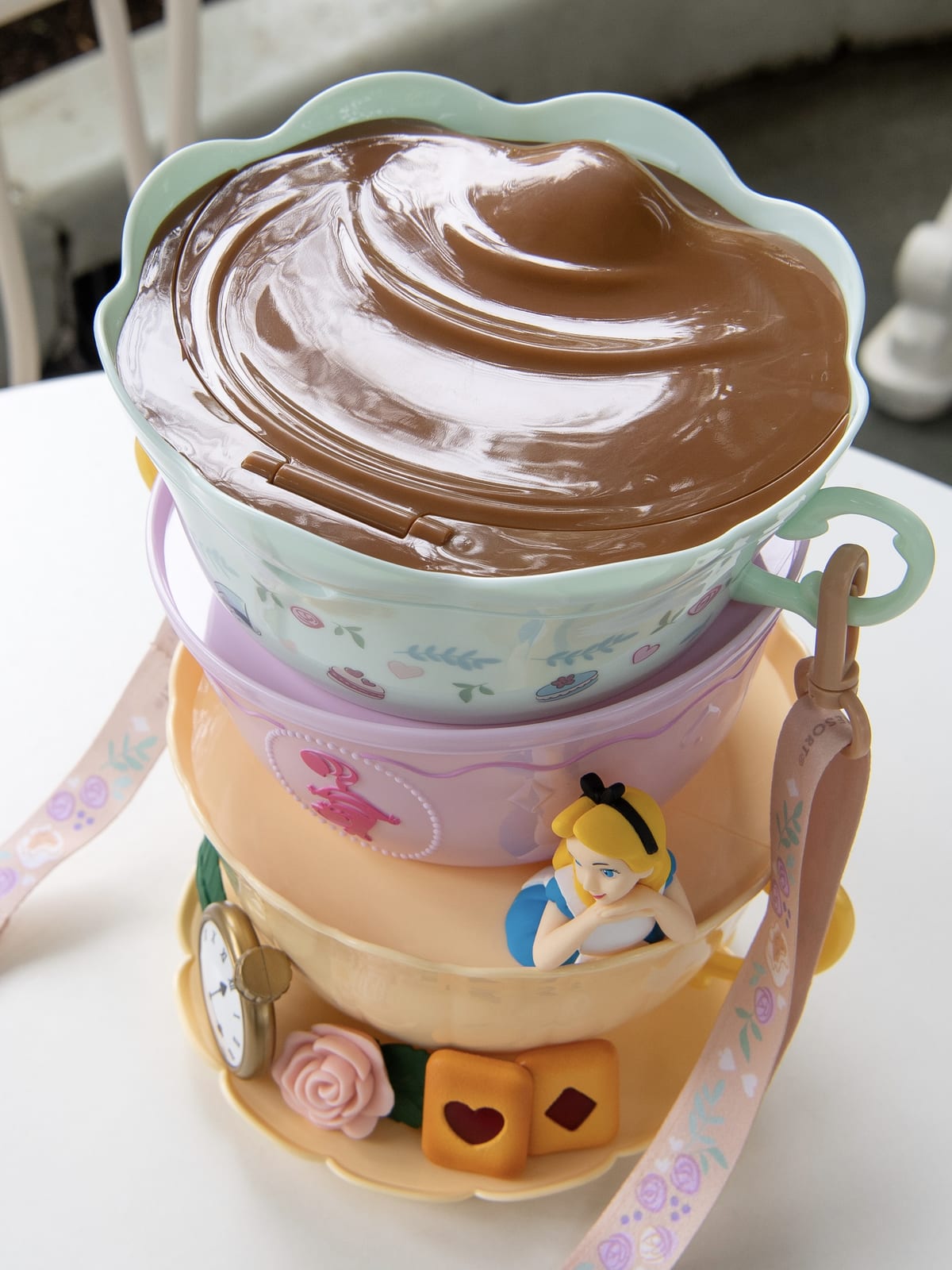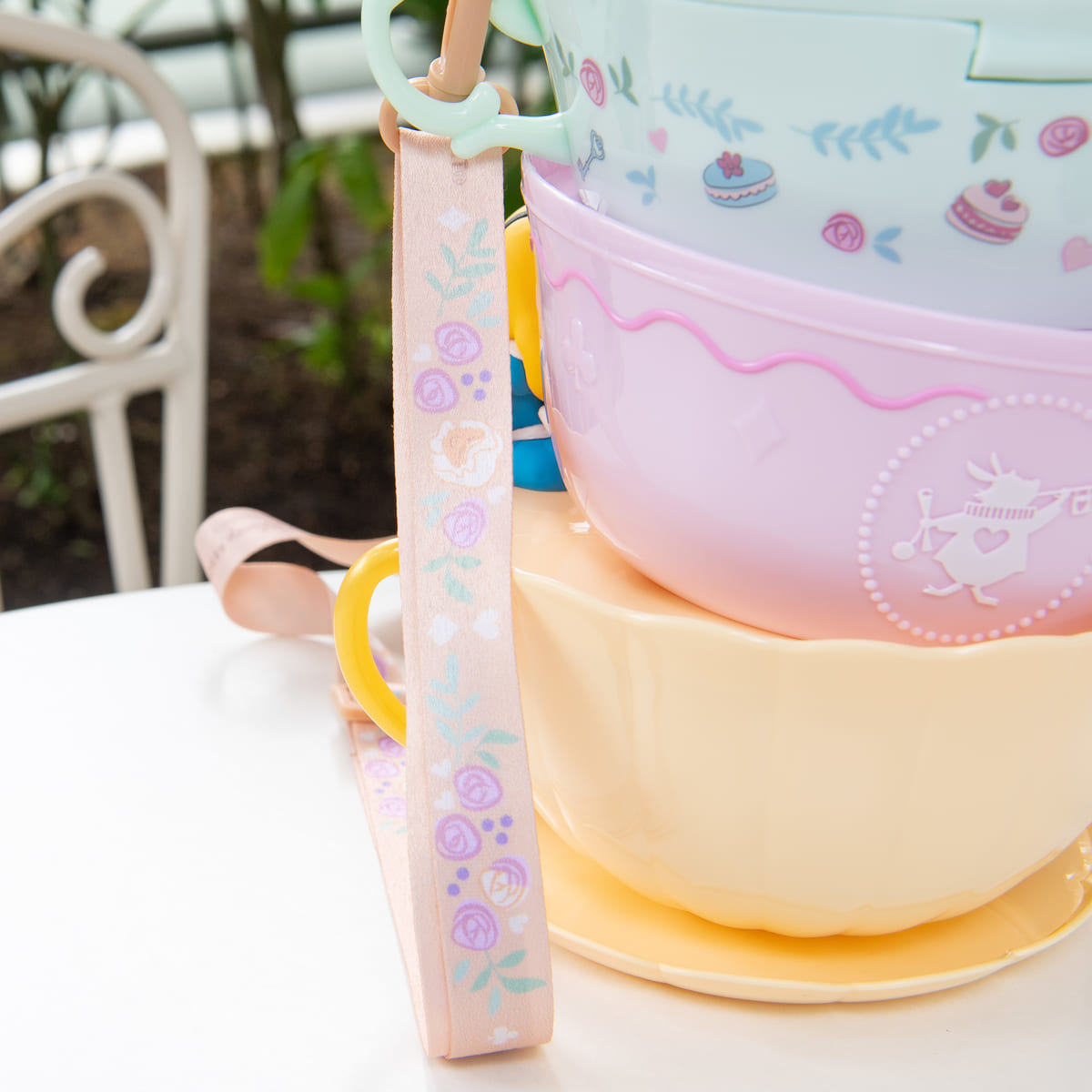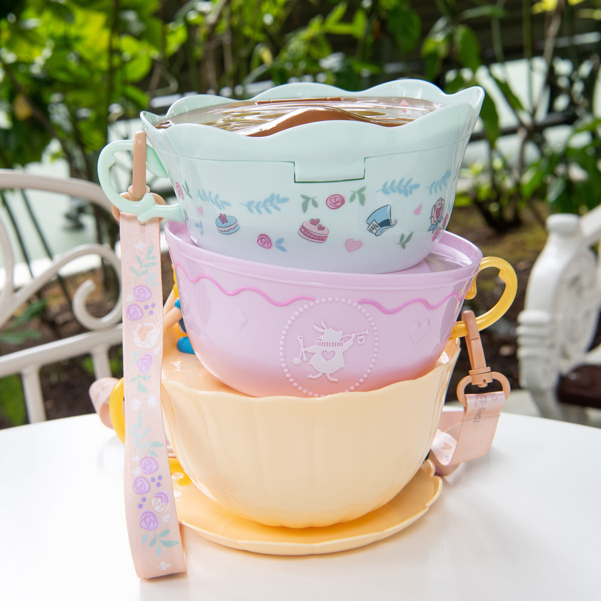 作中の風変りなお茶会(マッド・ティーパーティー)のシーンを彷彿とさせるティーカップが重なったデザインが楽しいポップコーンバケットが登場!