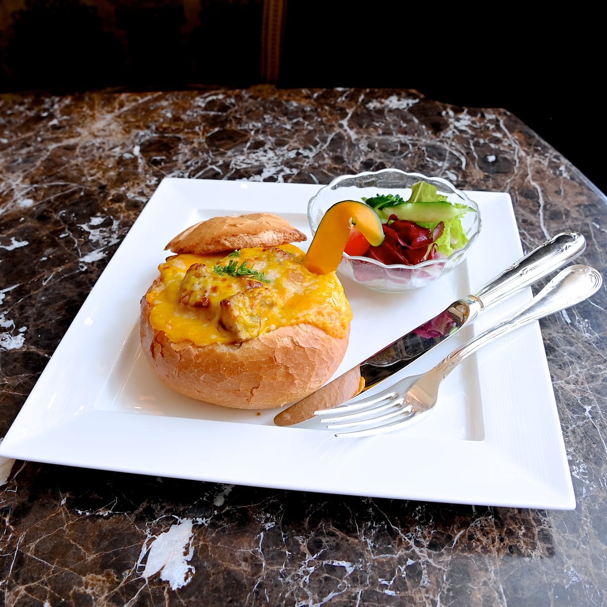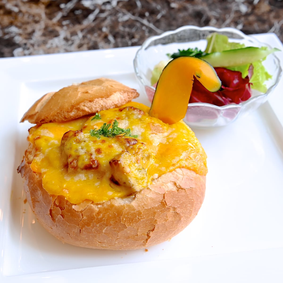 パンがお皿になった、見た目もインパクト抜群なブレッドボウルメニュー。