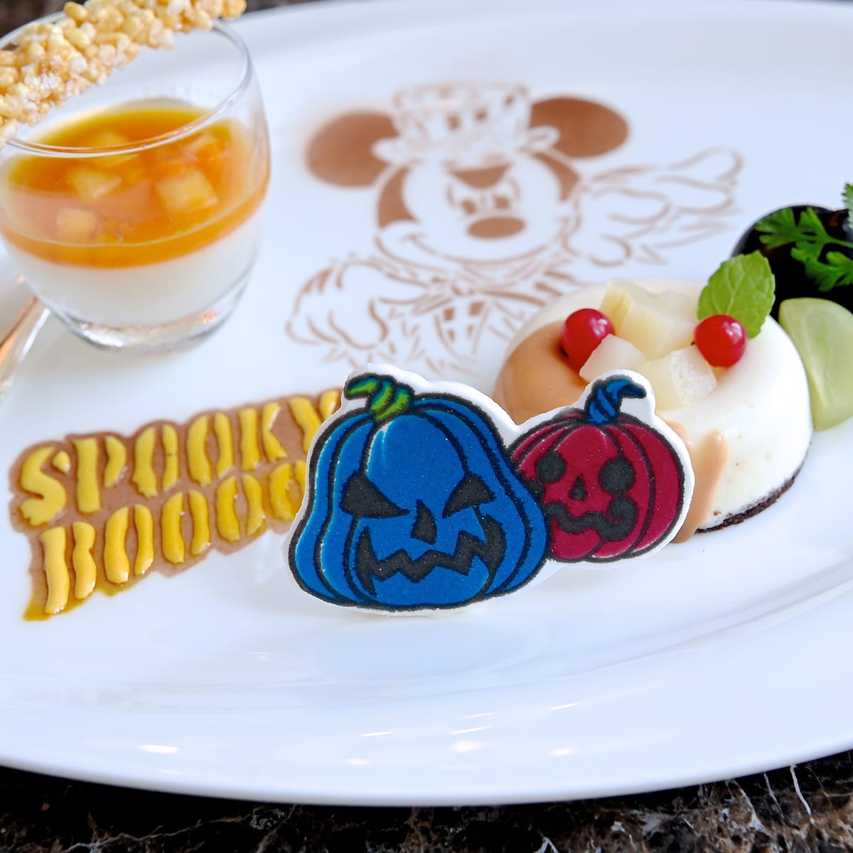 デザートプレートにはゴーストに変身したミッキーマウスがデザインされています☆