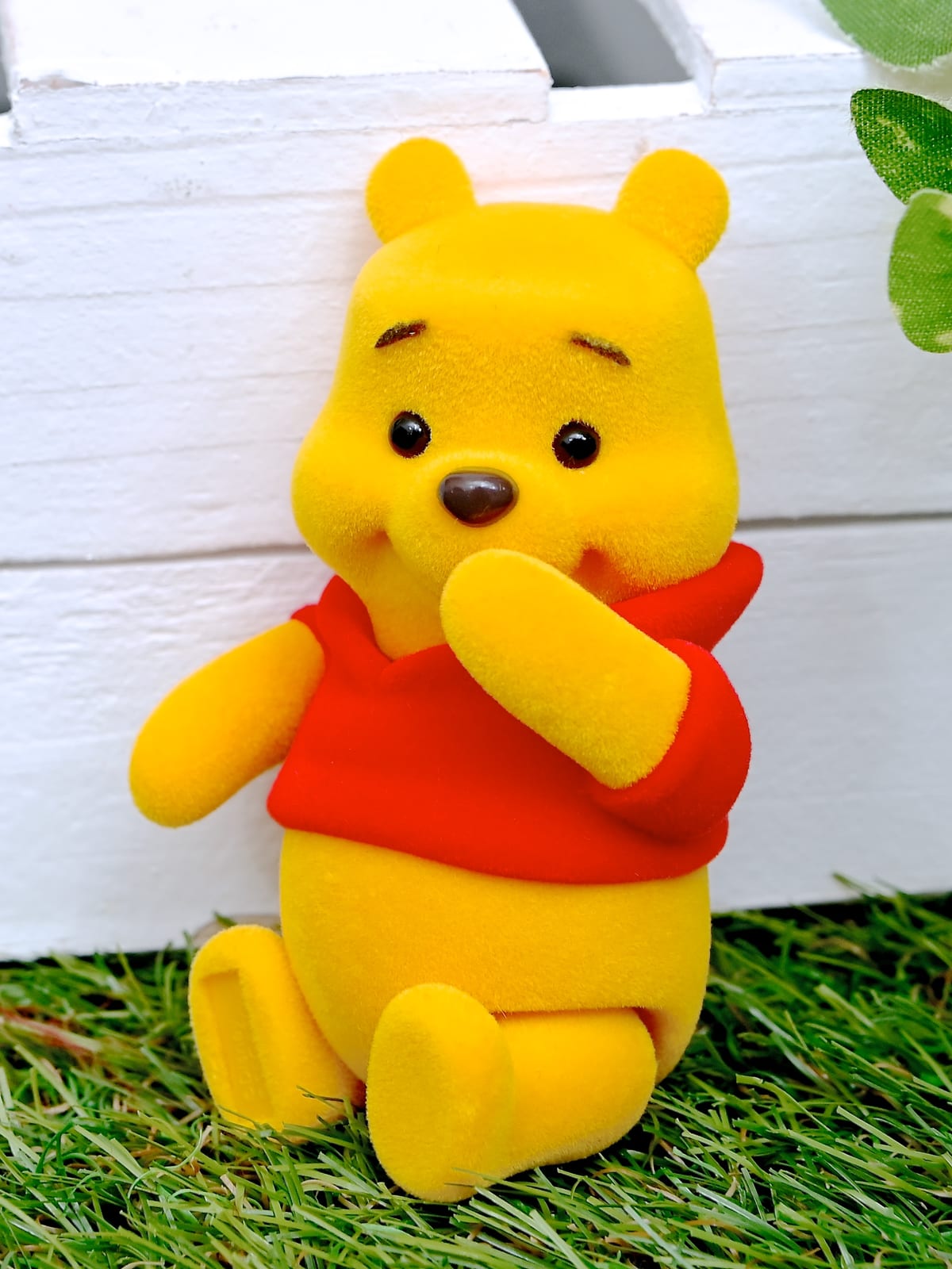 赤いシャツを着たふっくら愛らしい「くまのプーさん」のドール。