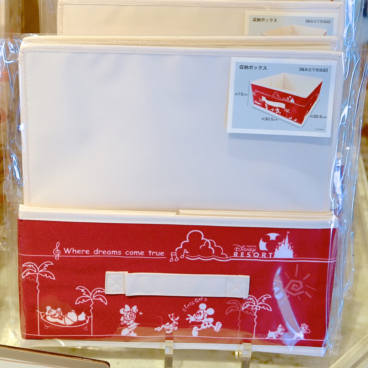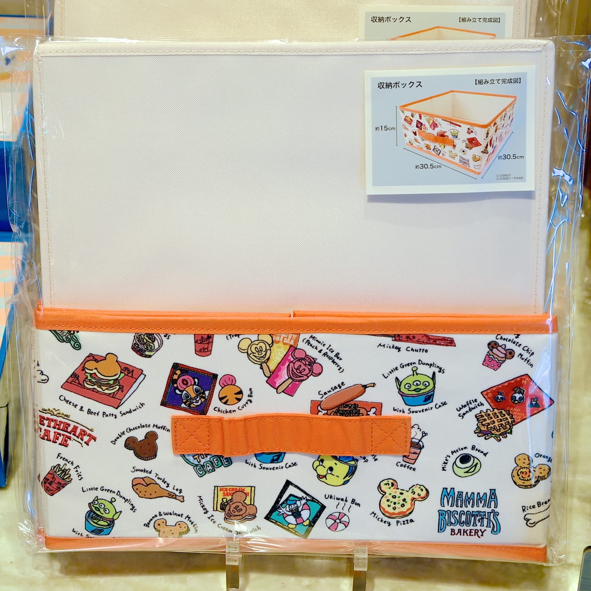 人気パークフードが総柄でデザインされた組み立て式の収納ボックス。