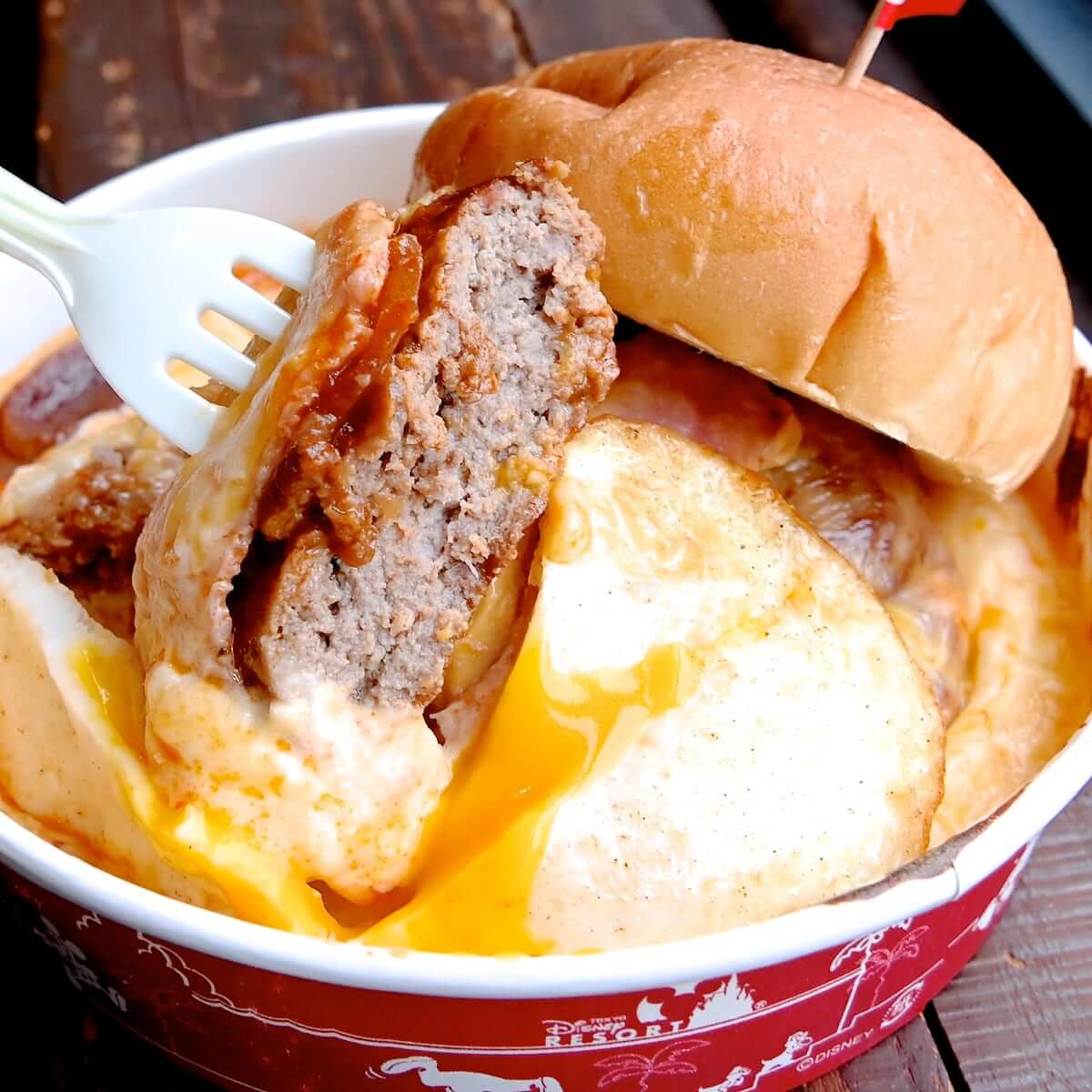 ドックサイドダイナーに登場した絶品メニュー“ベーコンエッグバーガー、グラタン仕立て"!