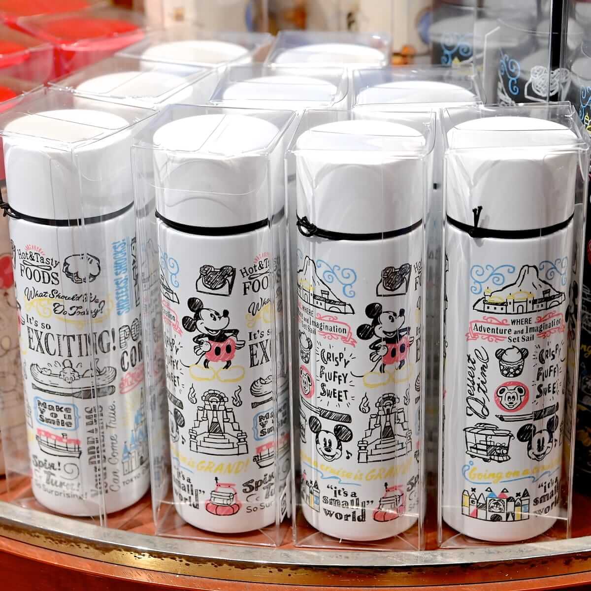 今回は、東京ディズニーリゾートの風景、アトラクション、フードなど手書き風にデザインされたステンレスボトルを紹介します☆