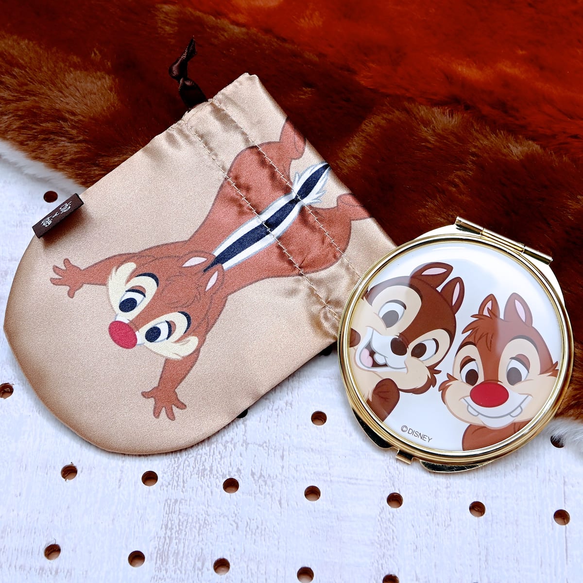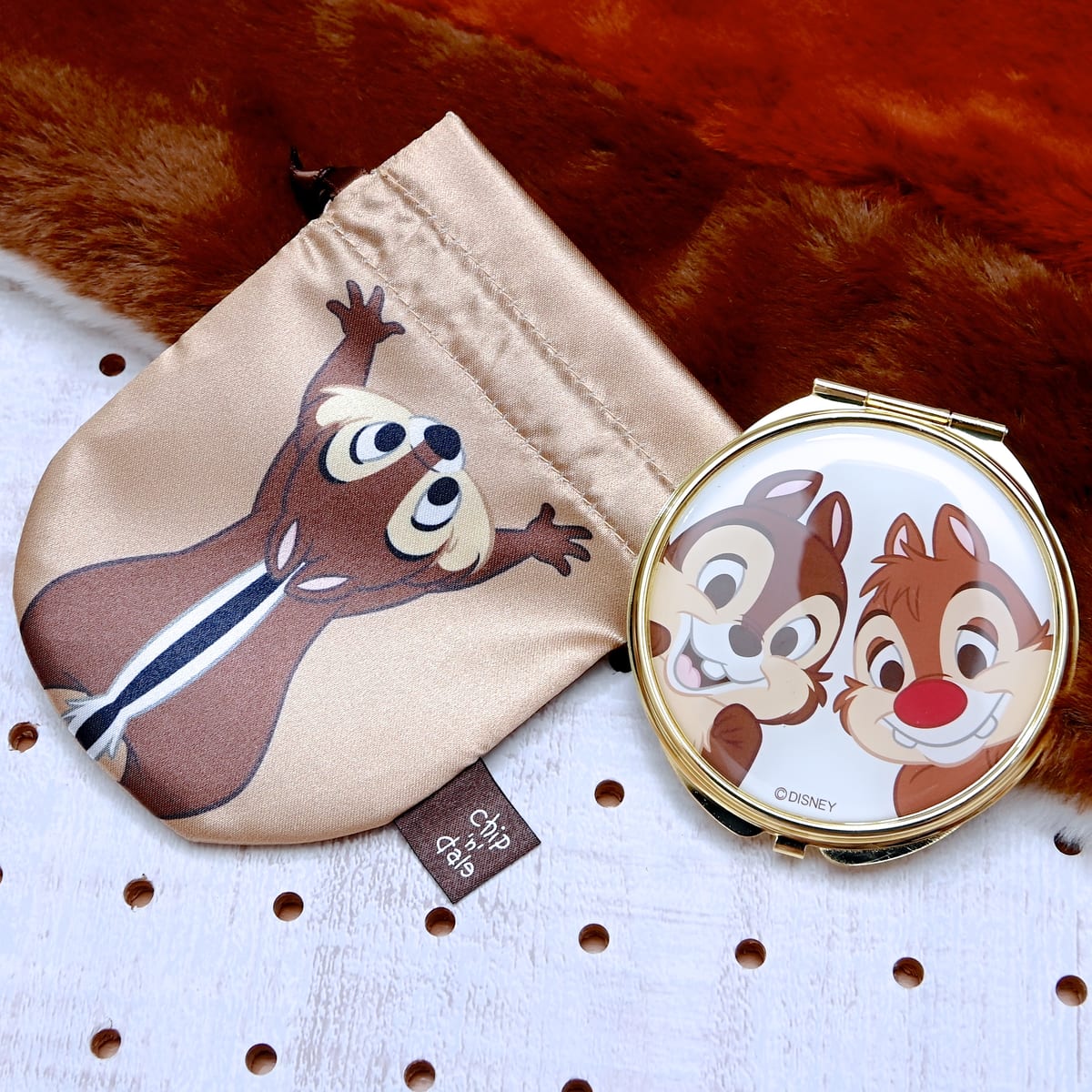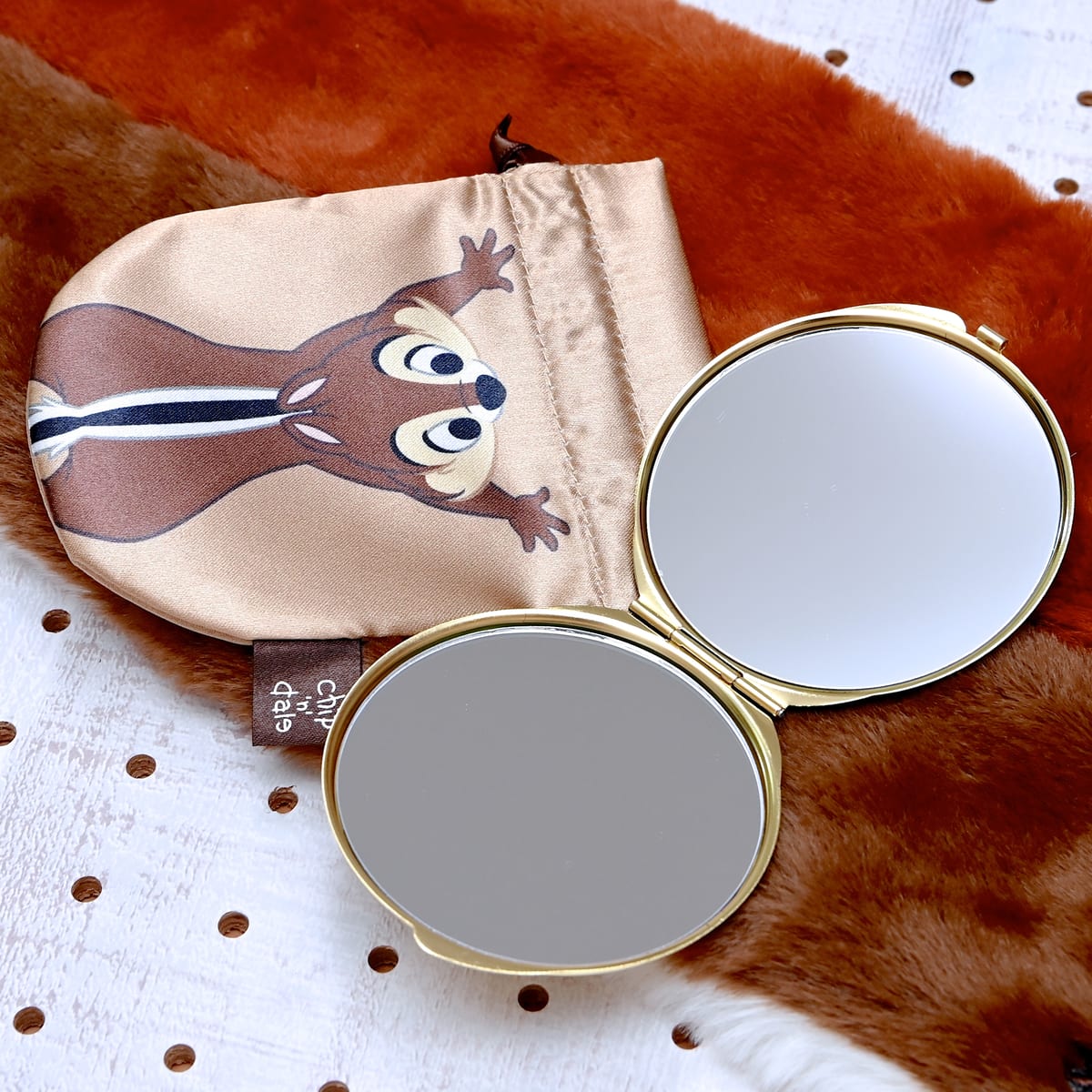 巾着付きのチップ&デールコンパクトミラー。