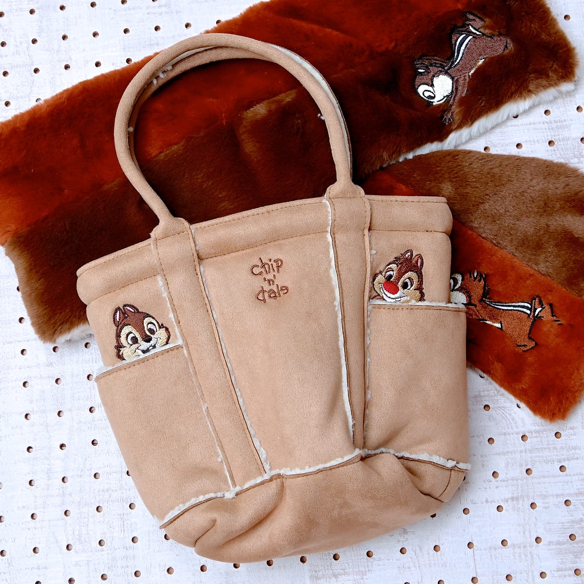 チップ&デールの毛色がかわいいふわふわ素材のマフラー。
