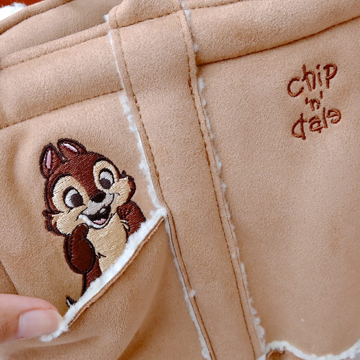 両端にくっついているチップとデールの刺繍もポイント。