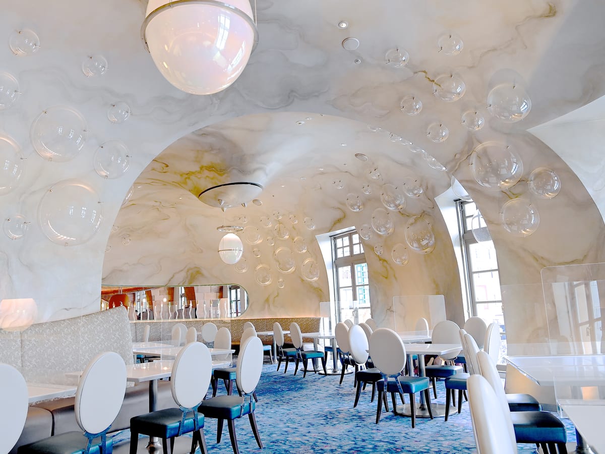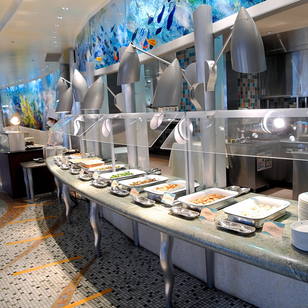 海の世界をモチーフにした広々とした店内でブッフェやコース料理がいただけるレストランです。