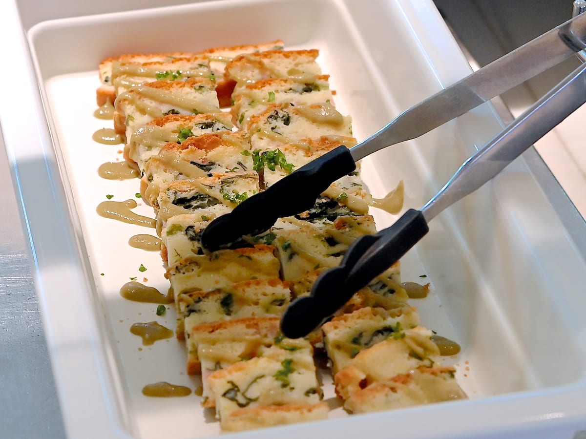ホウレン草とオニオンのケークサレ タプナードソース