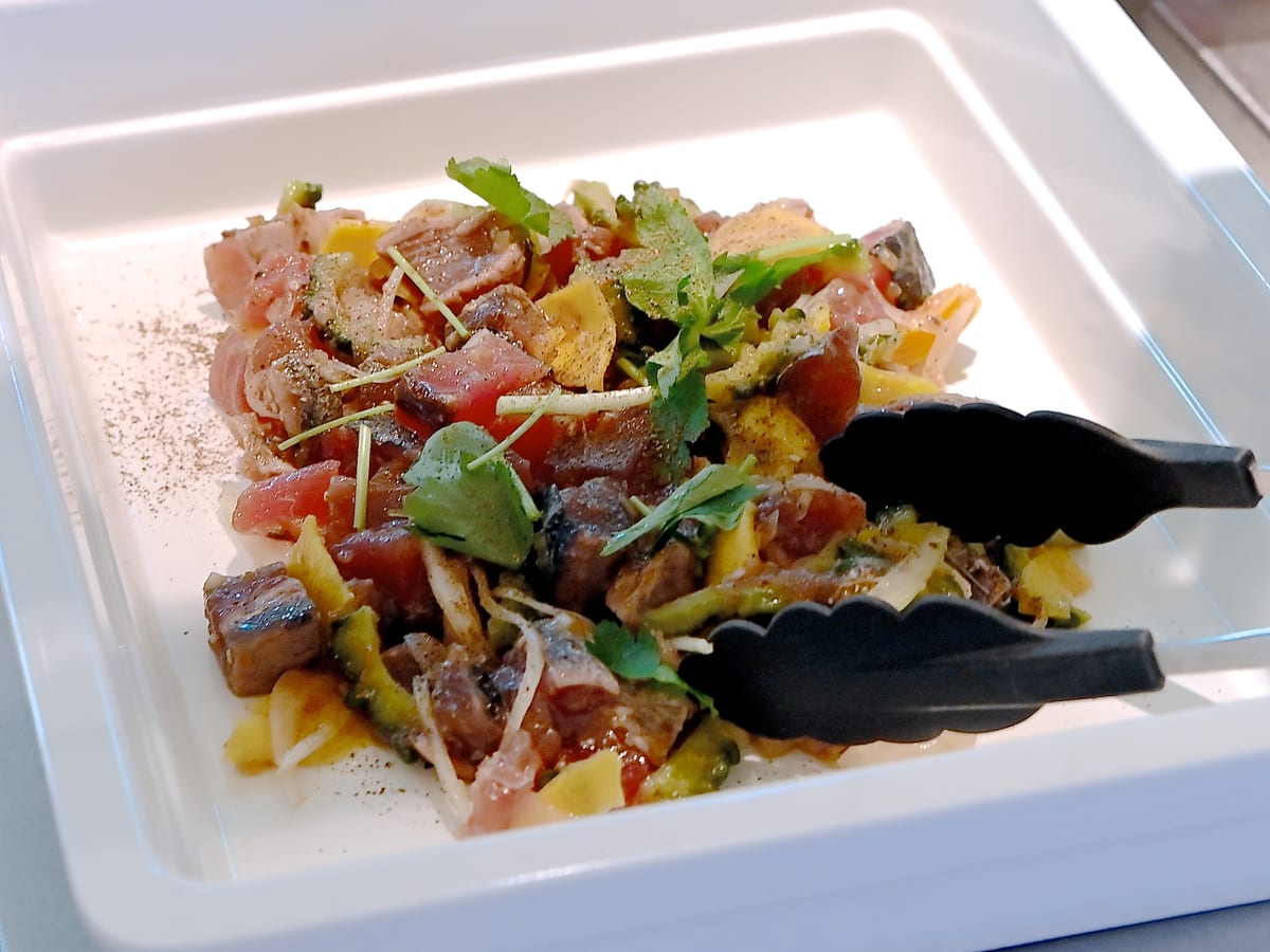カツオのサラダは山椒風味でさっぱりと。