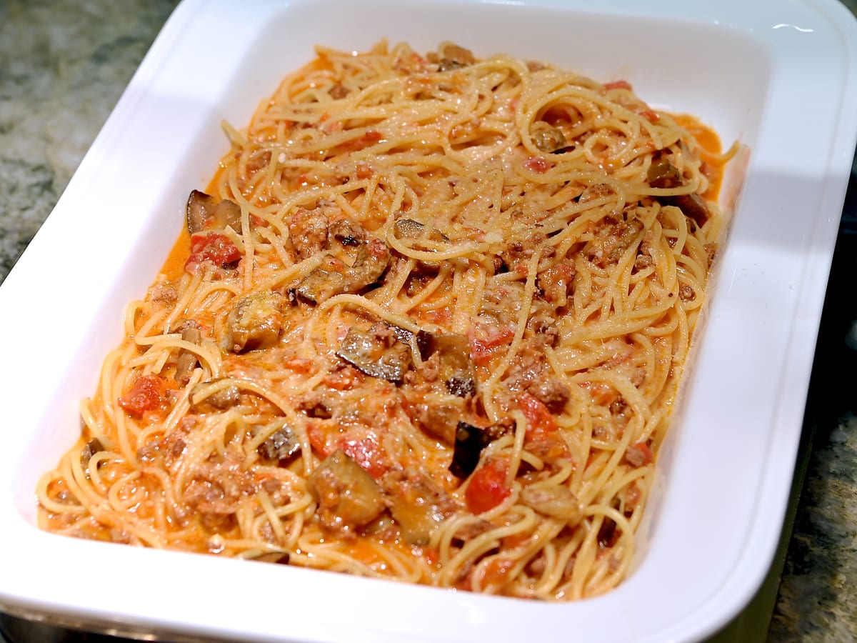 ナスのミートソースパスタ