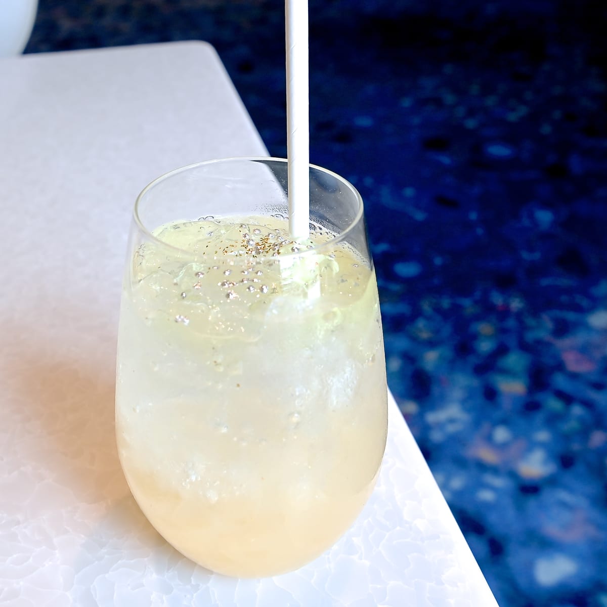 白ブドウジュース、カルピス、グレープフルーツシロップ、トニックウォーターにレモンゼリー、アラザン、金粉がトッピングされています!