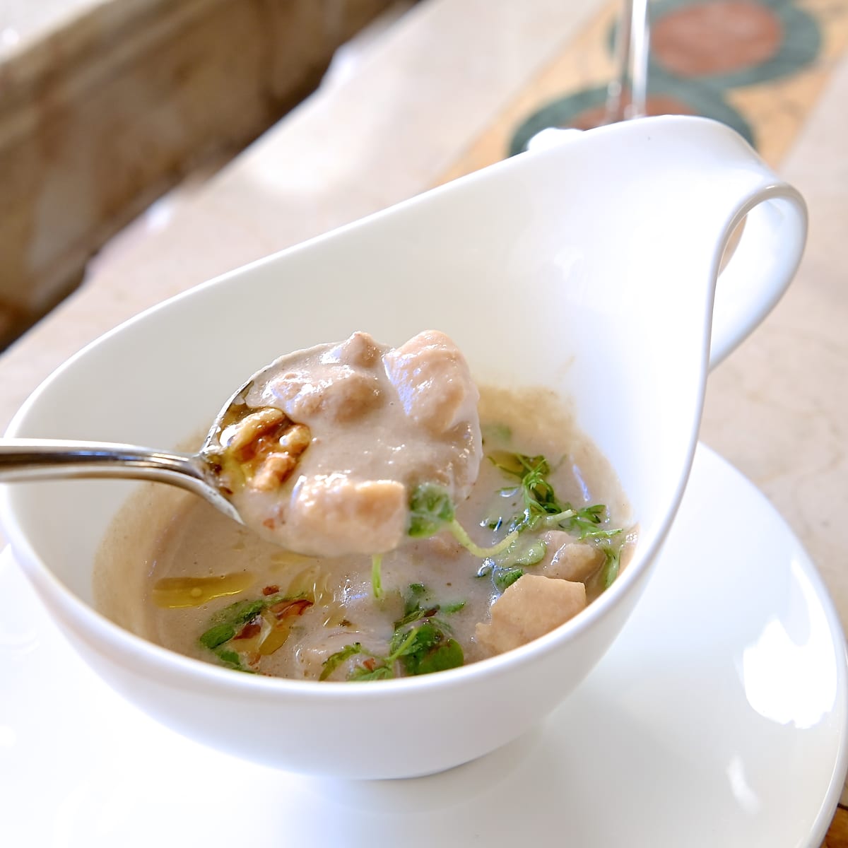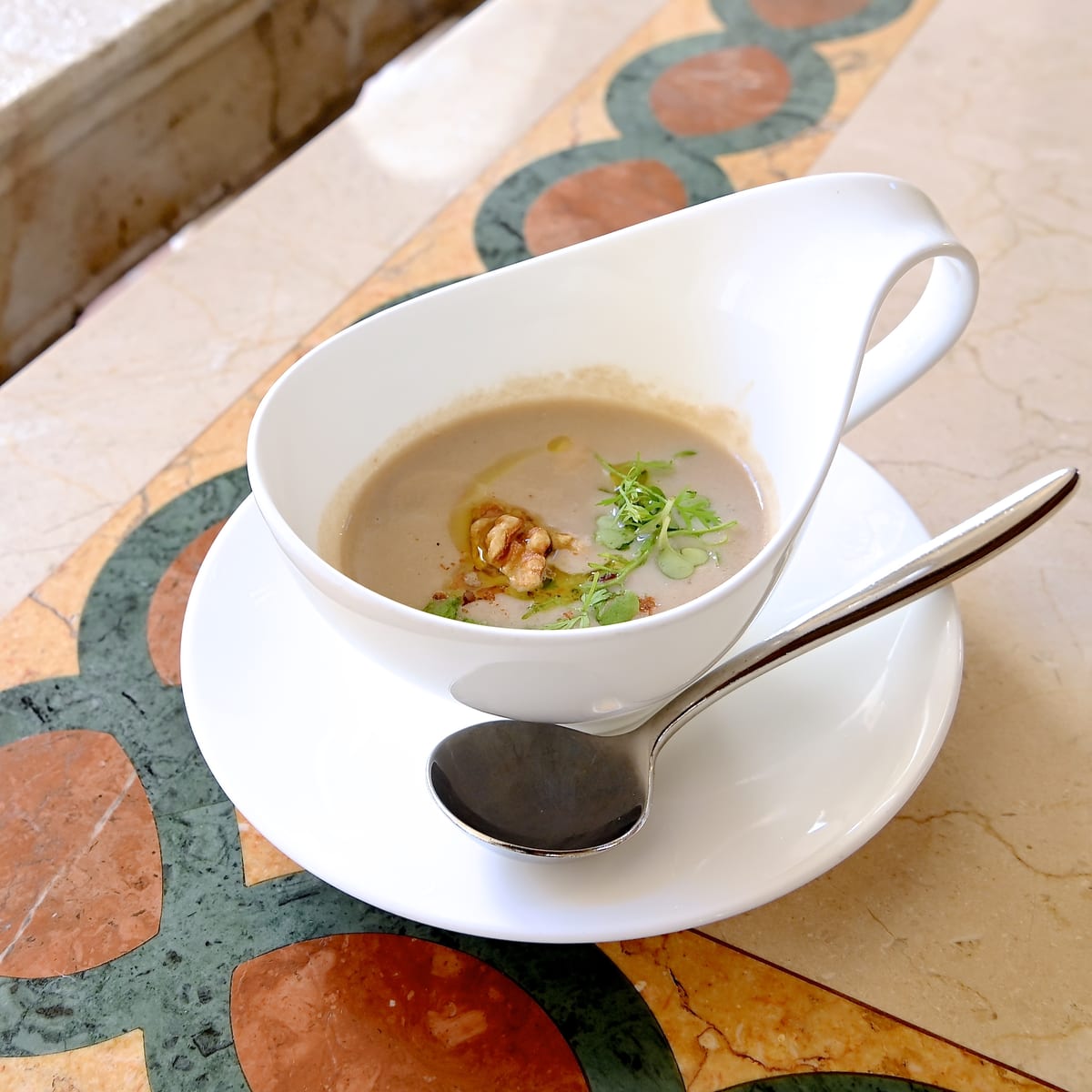 キノコやチキン、クルミが入った濃厚クリーミーなスープです☆