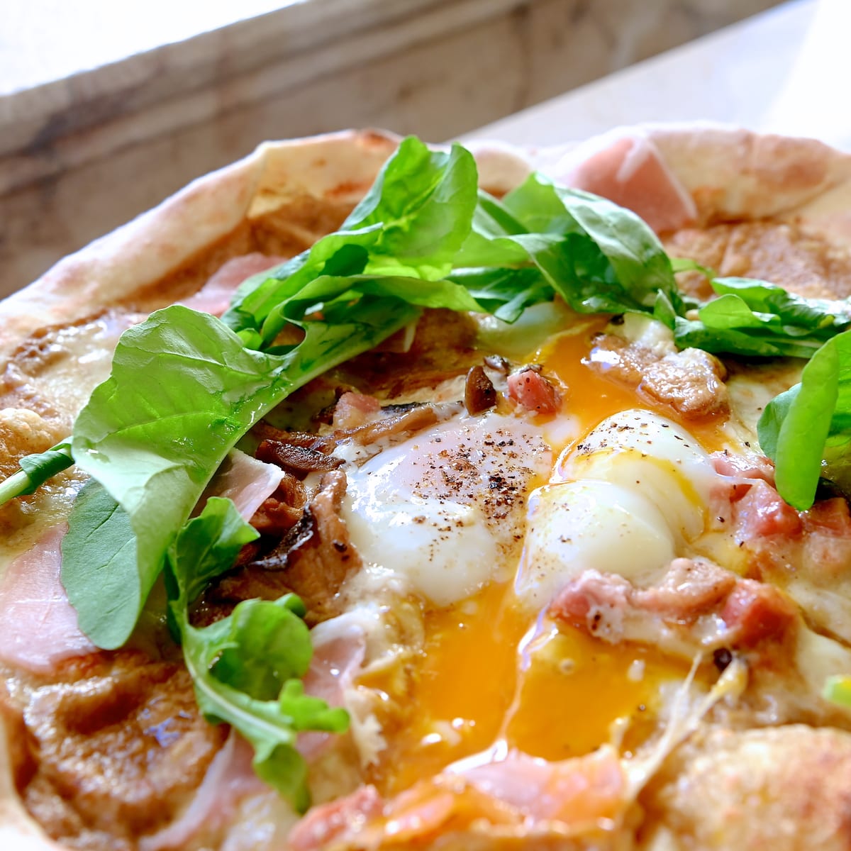 生ハムの塩味、風味豊かなポルチーニ、チーズ、半熟玉子のクリーミーな美味しさが楽しめるピッツァです☆
