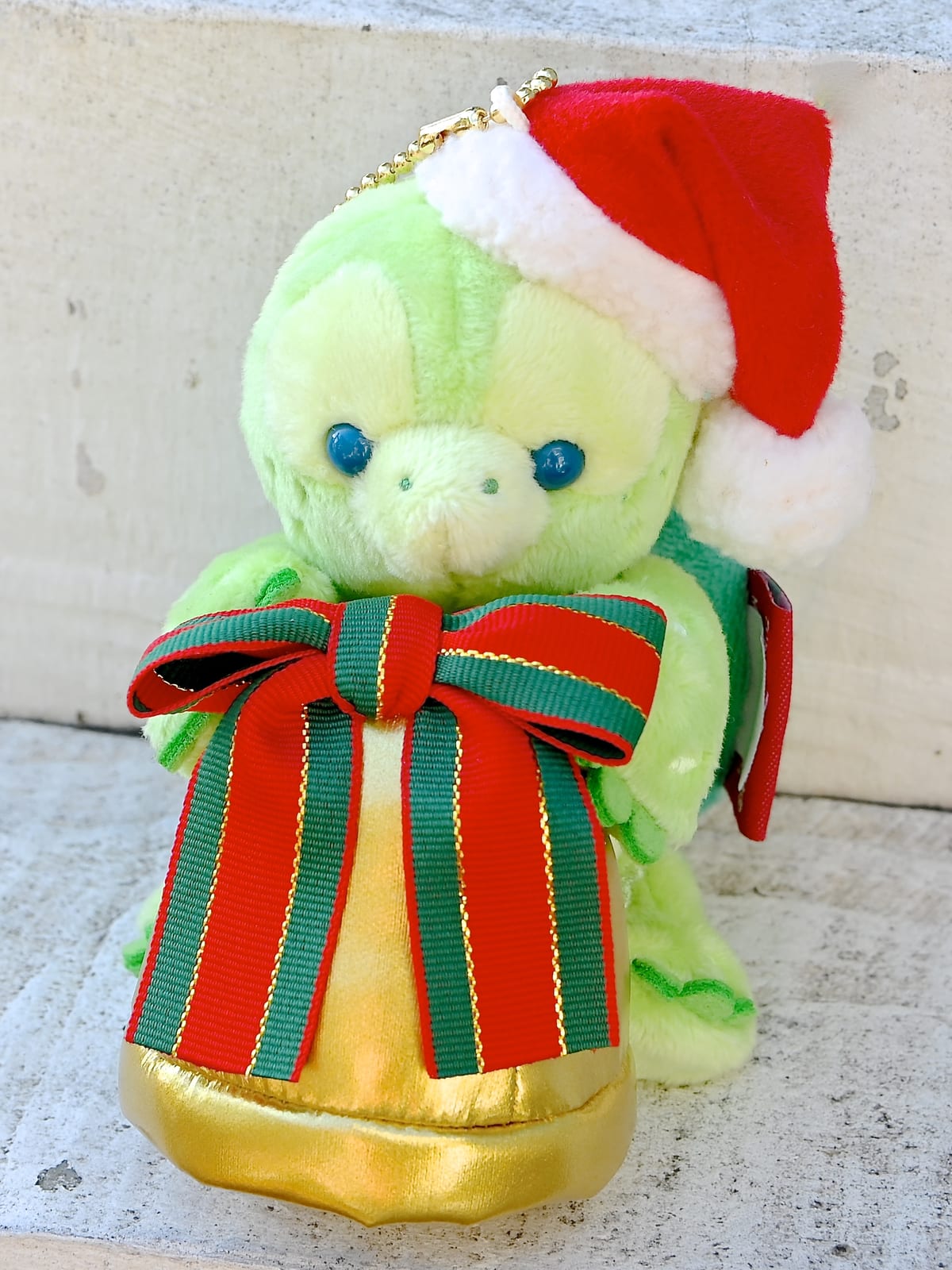 サンタの帽子を被ったジェラトーニのぬいぐるみバッジ。