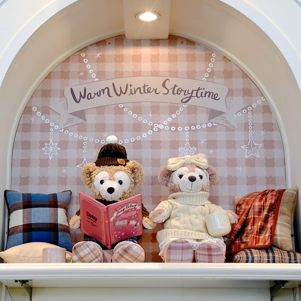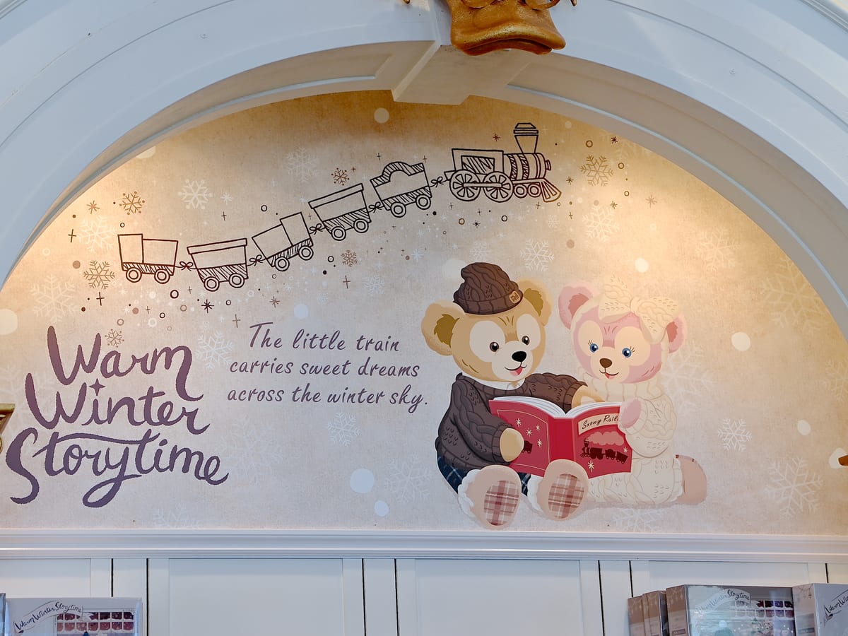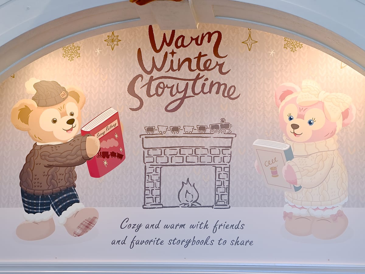 仲良く本を読むダッフィー&シェリーメイ!「ダッフィー&フレンズのウォームウィンター・ストーリータイム」スペシャルグッズの紹介でした。