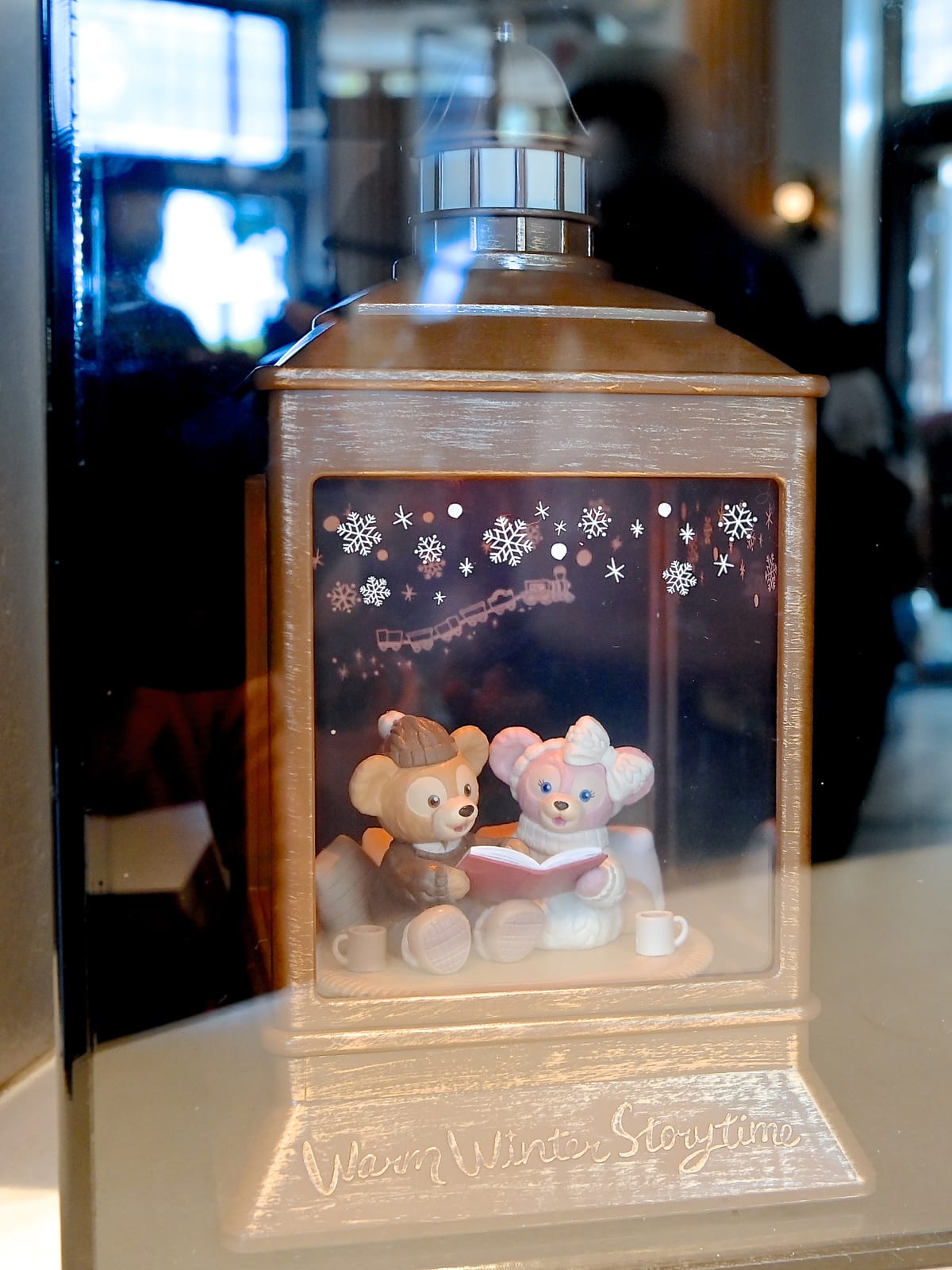 仲良く絵本を読むダッフィーとシェリーメイがデザインされたインテリアライト。