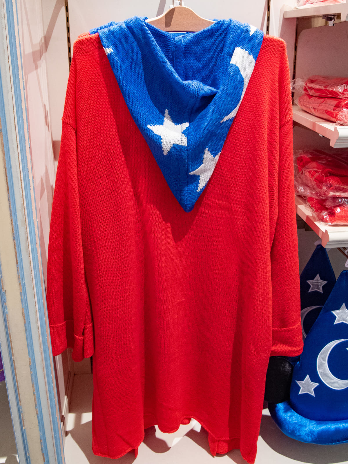 カーディガンはローブをイメージした真っ赤なデザイン。