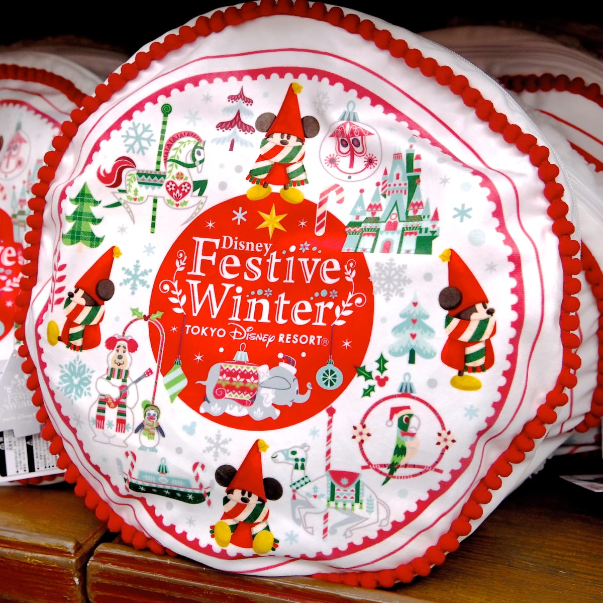 リルリンリンの他、シンデレラ城、イッツ・ア・スモールワールド、キャッスルカルーセル、カントリーベア・シアターなどパークの施設をモチーフにしたオーナメントが総柄でデザインされています。