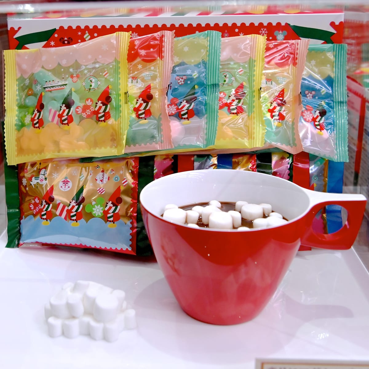ミッキーシェイプのマシュマロを浮かべて楽しめるココアのお土産。
