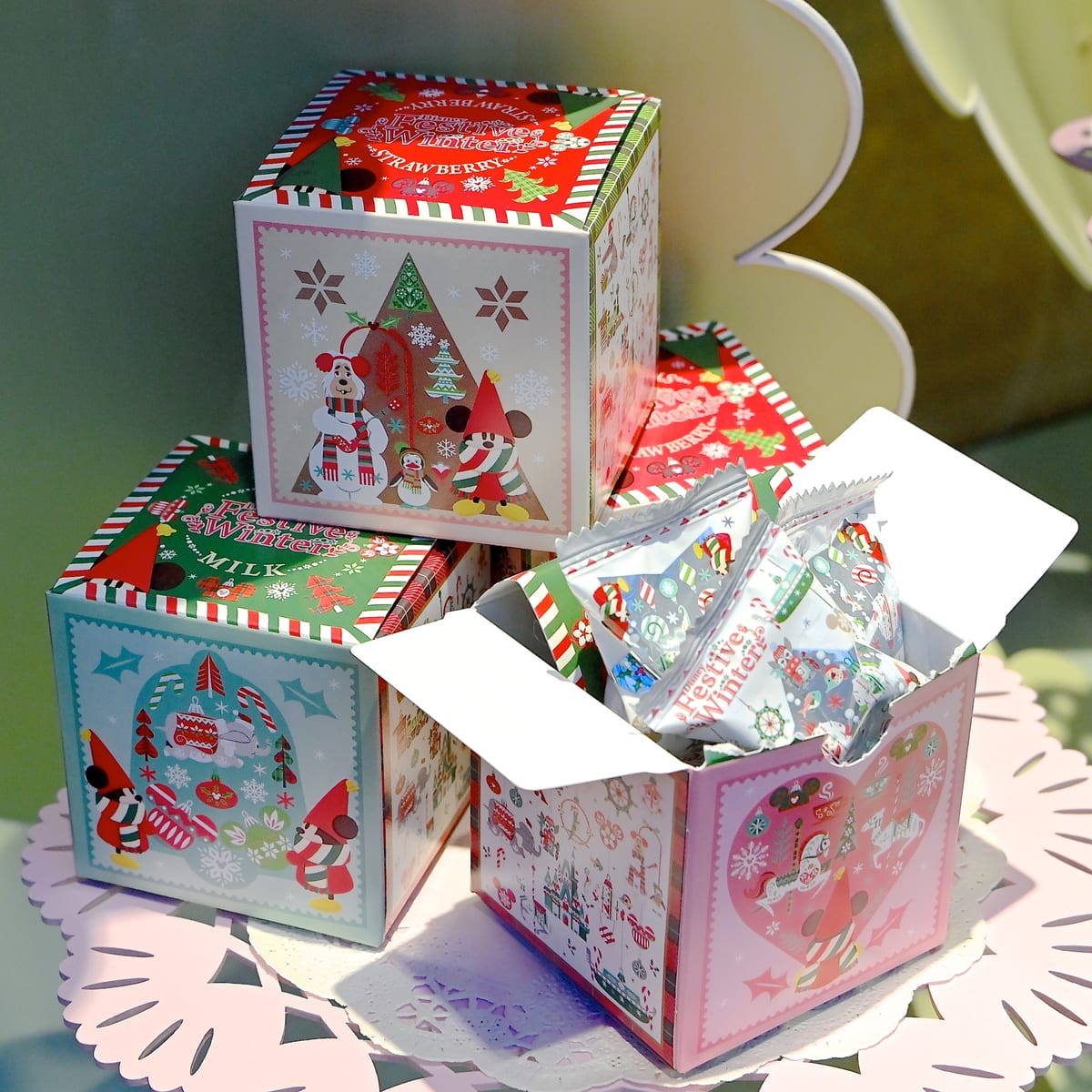 クリスマスらしい形、アートがデザインされたスウィーツが入っています。