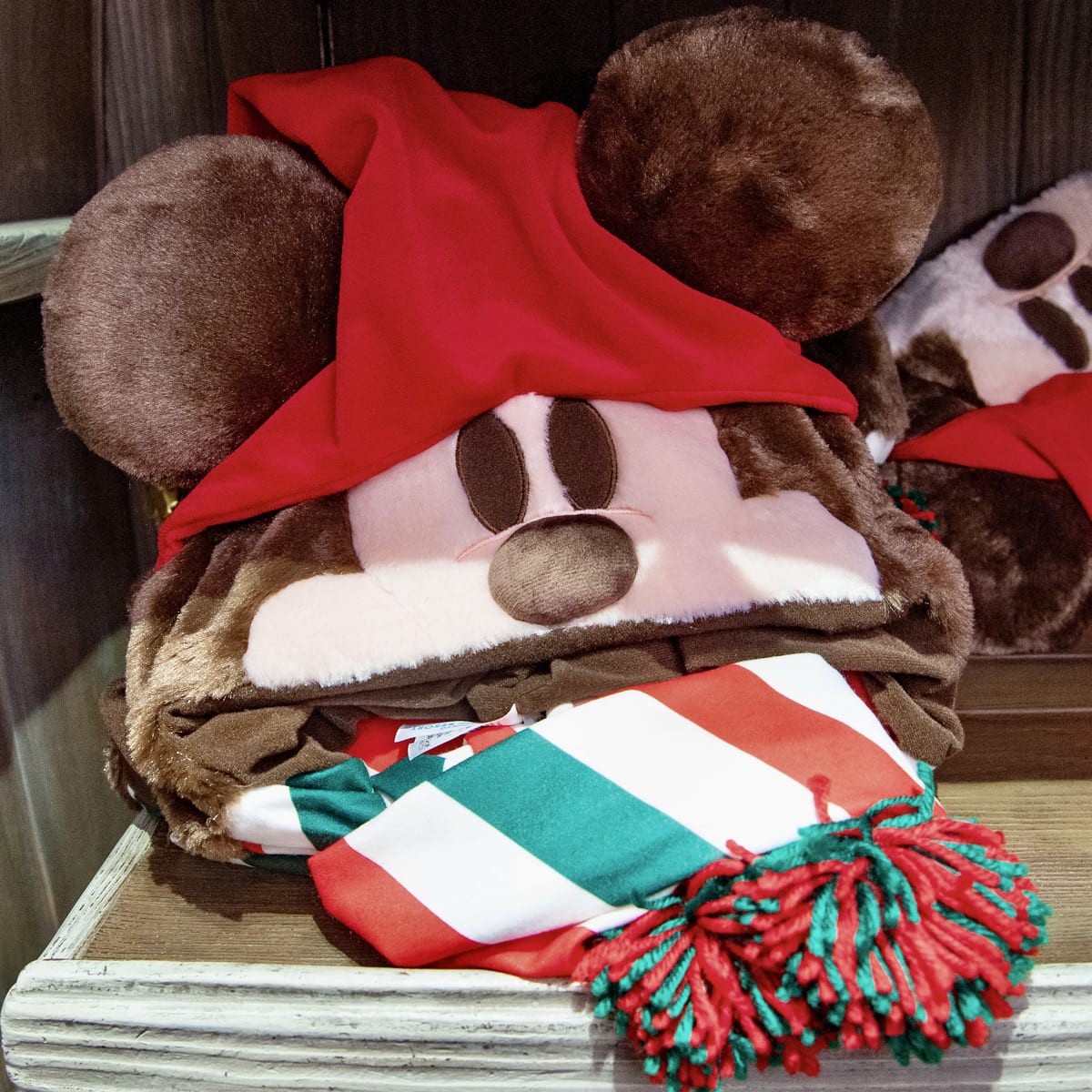 サンタ帽にはかわいい鈴デザイン、クリスマスカラーのマフラーにはポンポンがついています。
