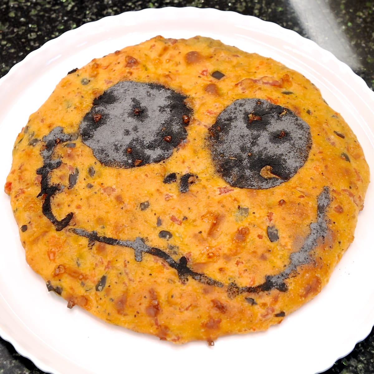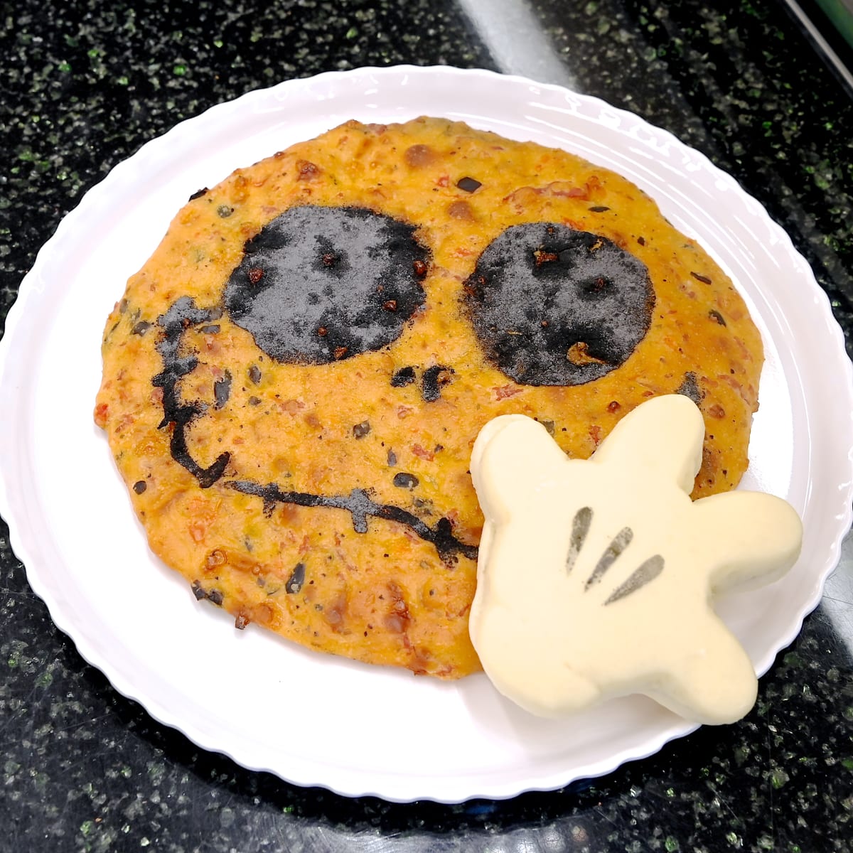 『ナイトメアー・ビフォア・クリスマス』の「ジャック・スケリントン」デザインのサラミとオリーヴのトマトブレッドと、