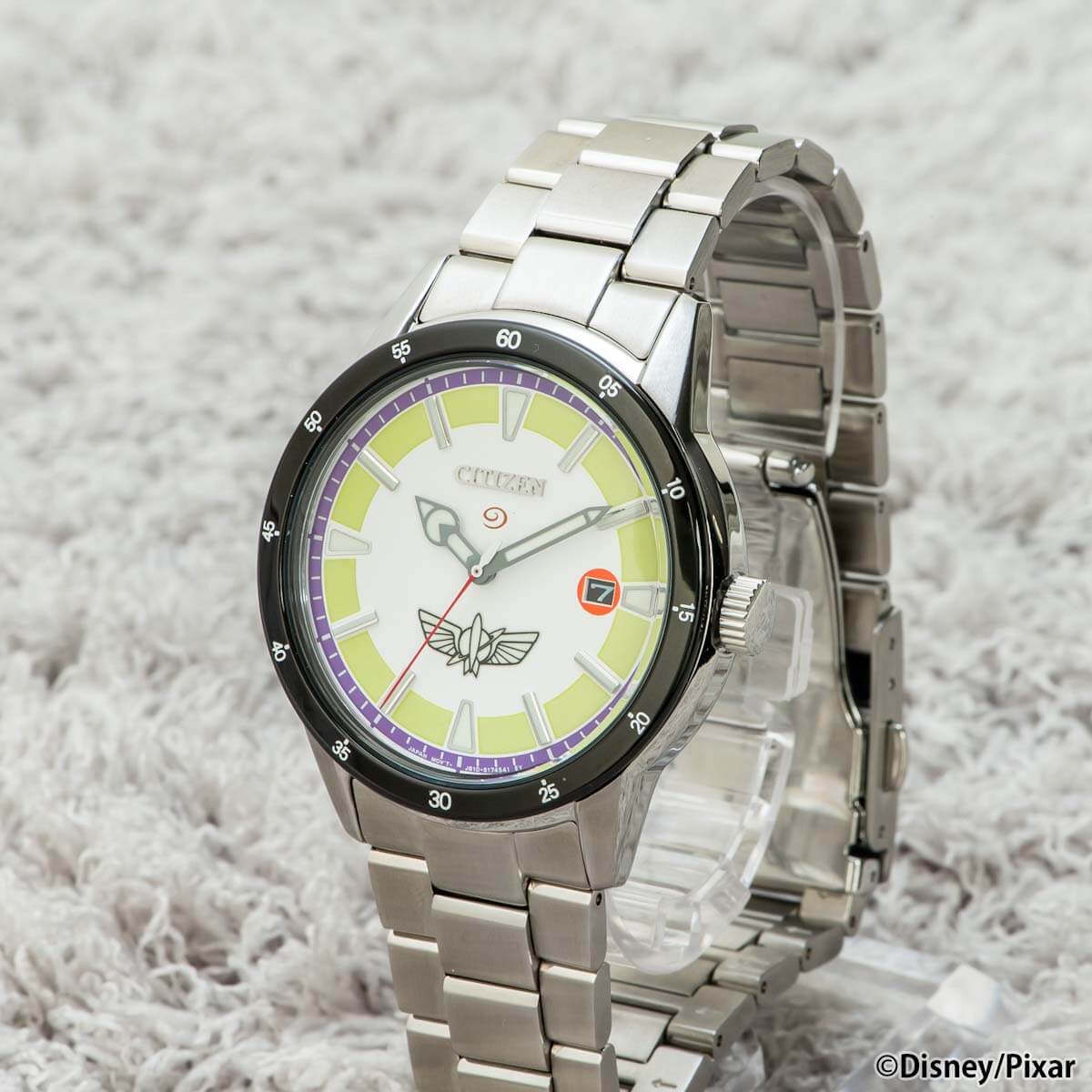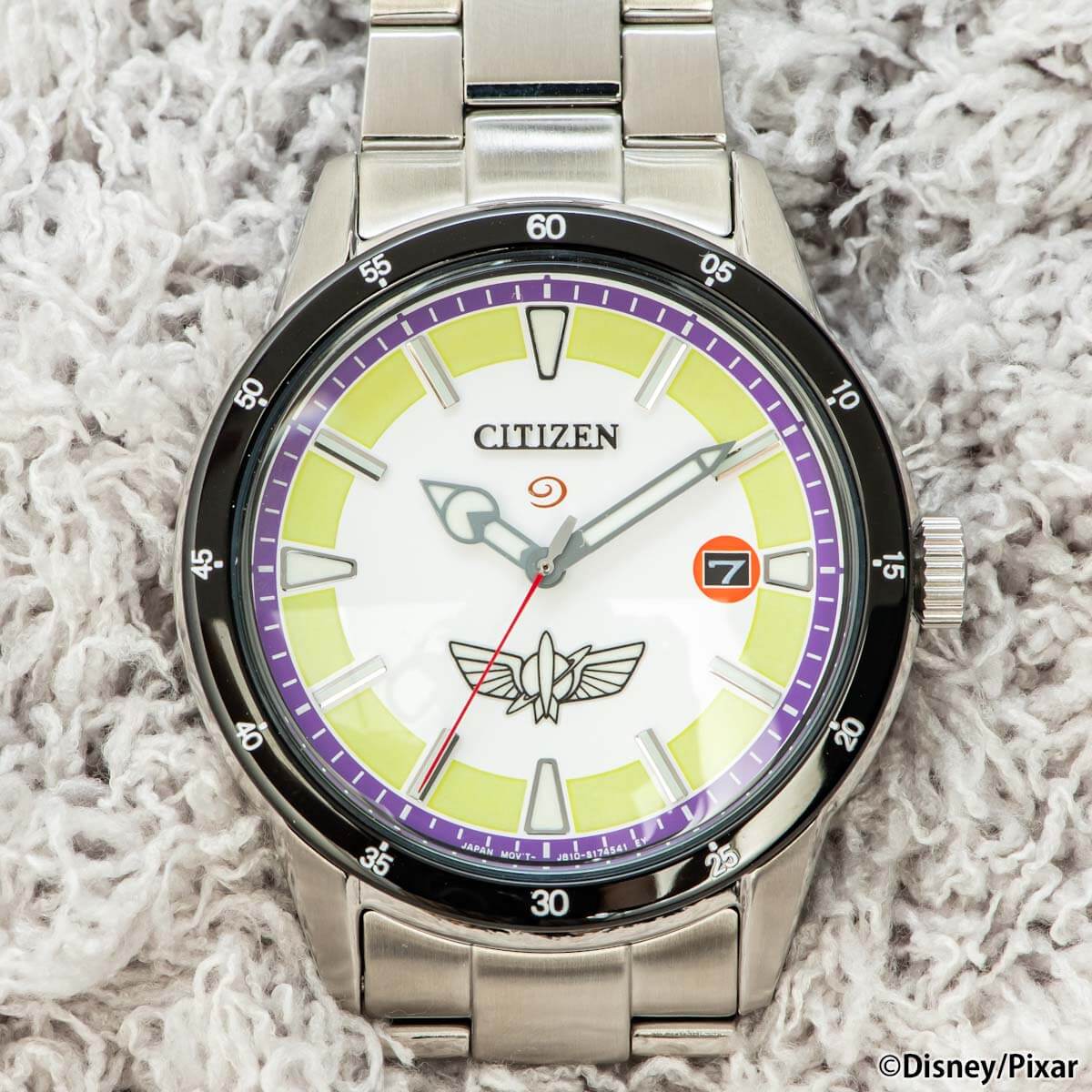 白・緑・紫のカラーリングと球面クリスタルガラスで、「バズ・ライトイヤー」のスペーススーツを表現した腕時計。