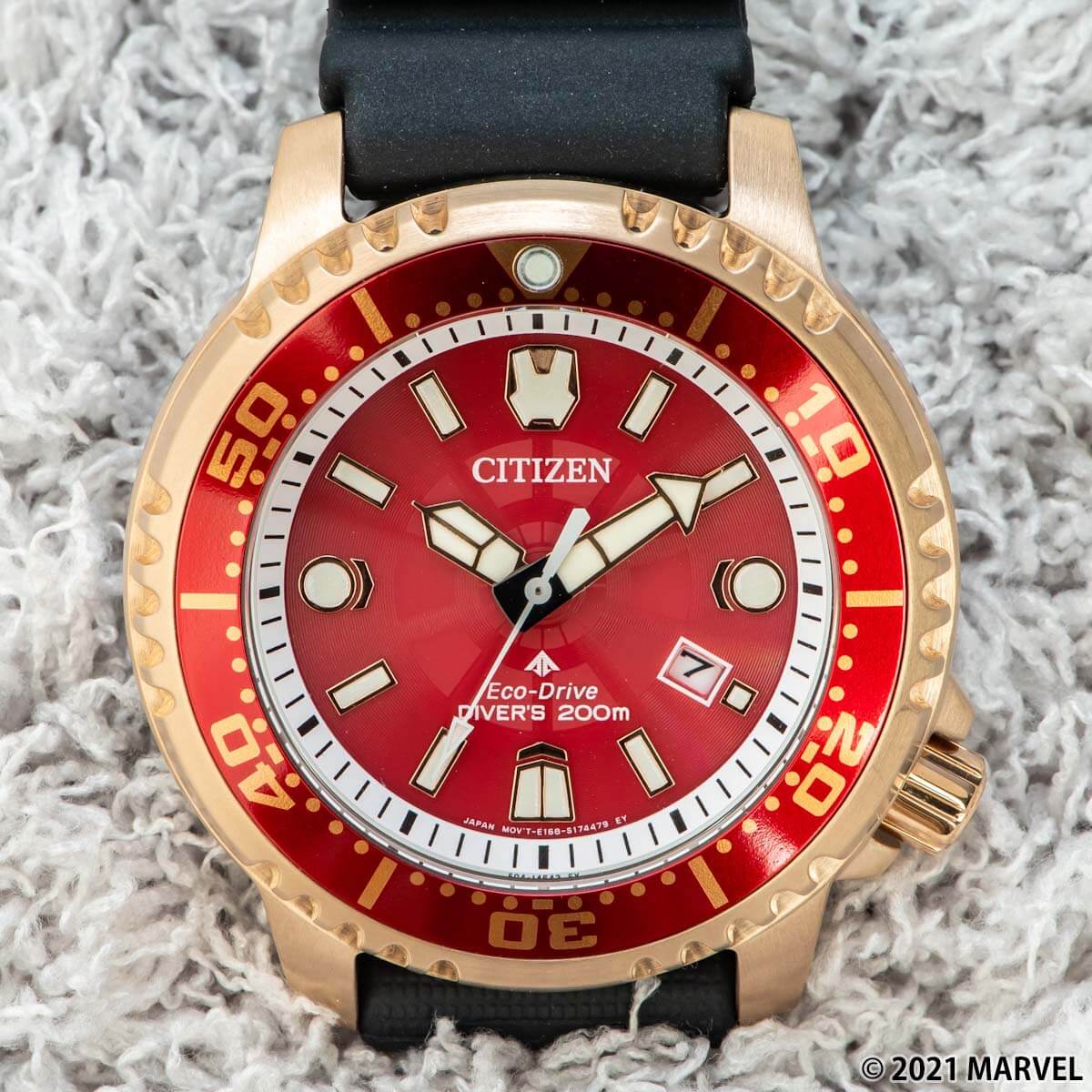 Marvel(マーベル)デザインからは人気キャラクター「アイアンマン」を彷彿とさせる、赤とゴールドのカラーリングの腕時計。