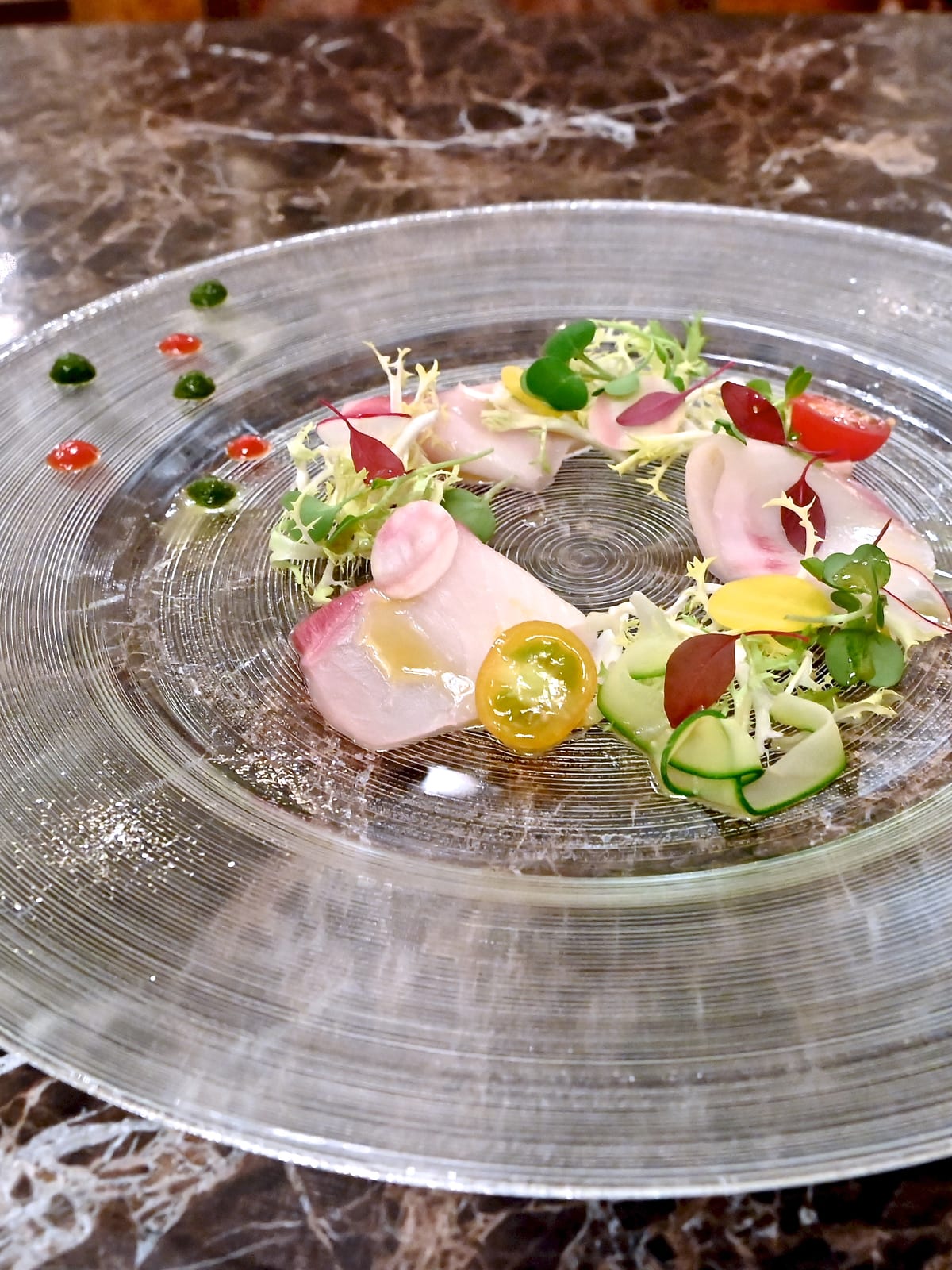 ブリのカルパッチョ仕立て 柚子胡椒のアクセント