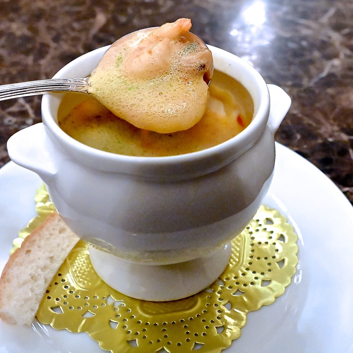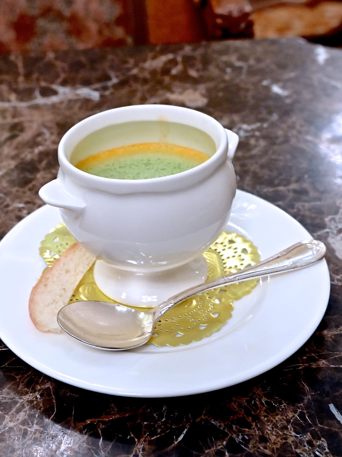 ■トマトと海老のクリームスープ バジルフォームを添えて