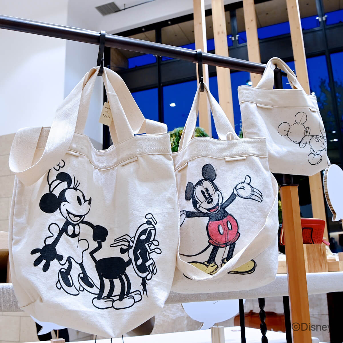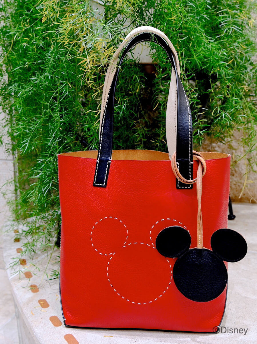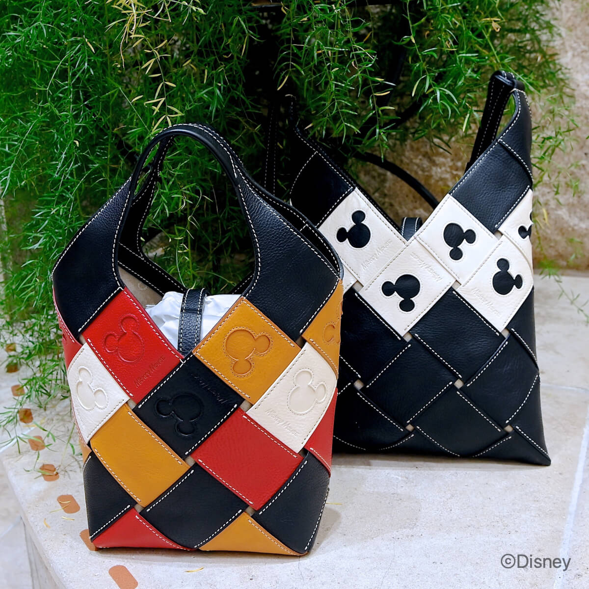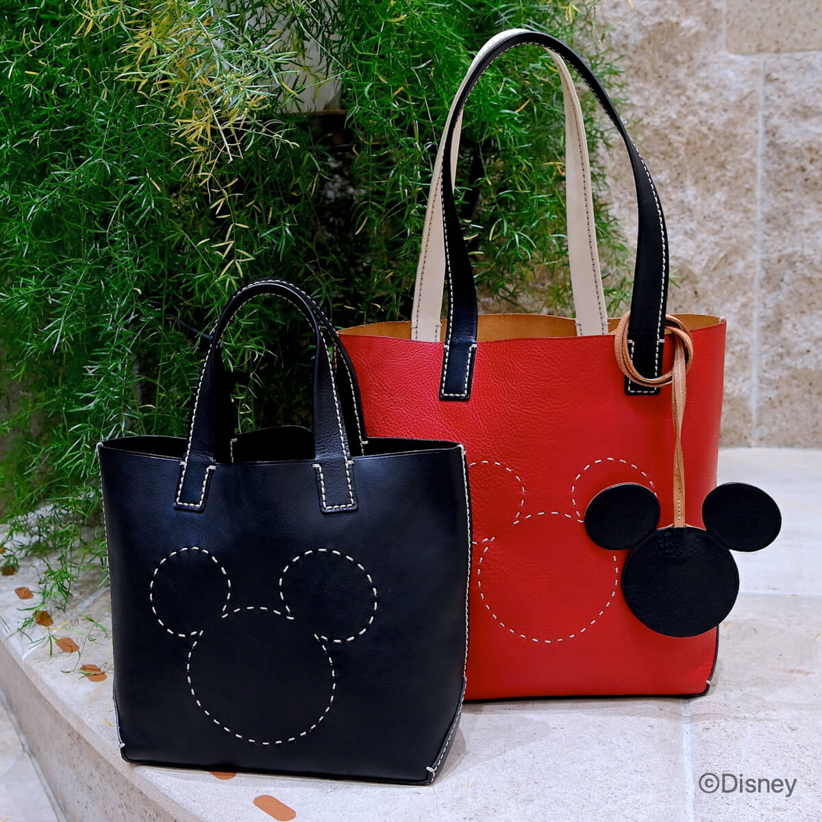 ミッキーマークがさりげなくあしらわれた大人かわいいトートバッグとショルダーバッグ。