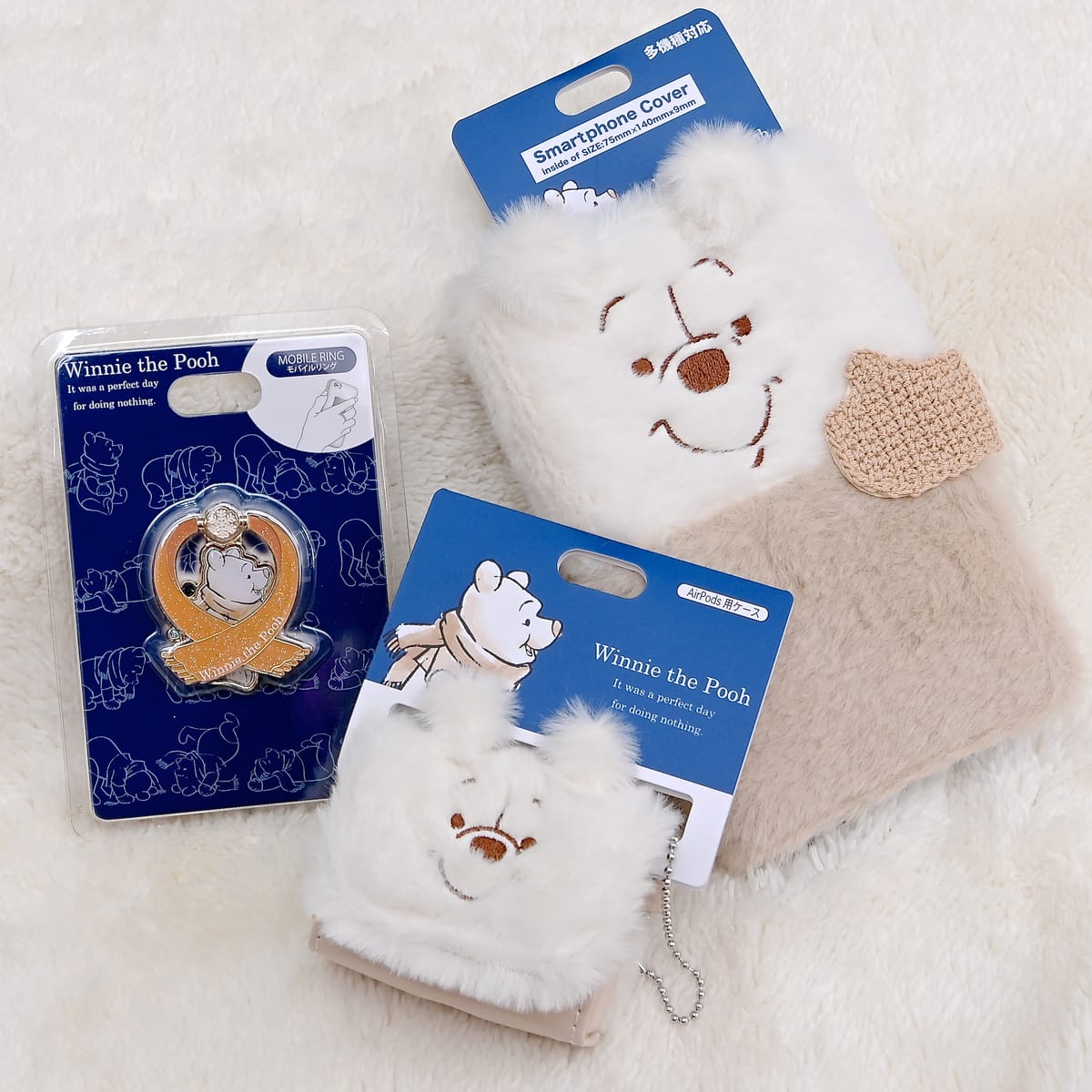 ふんわり白いプーさんのAirPodsとAirPods Pro兼用ケース。