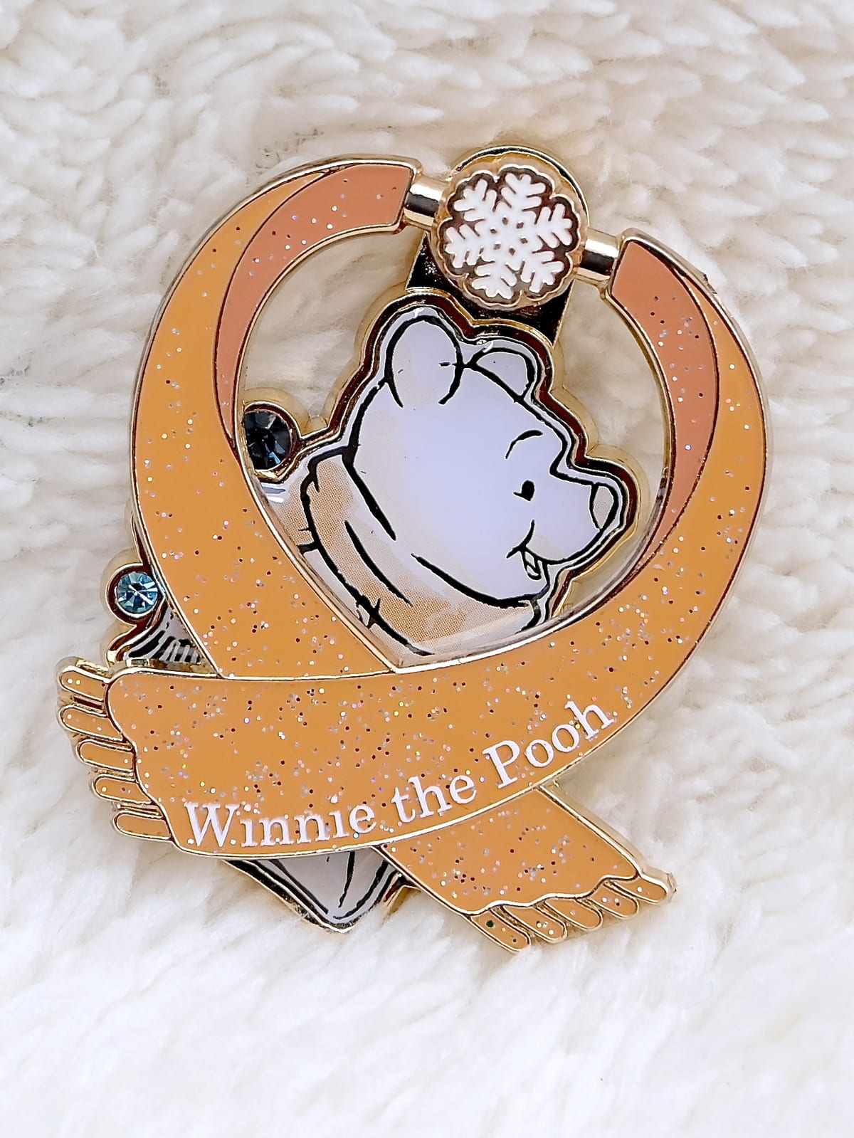 プーさんのまわりには青く輝くラインストーン。
