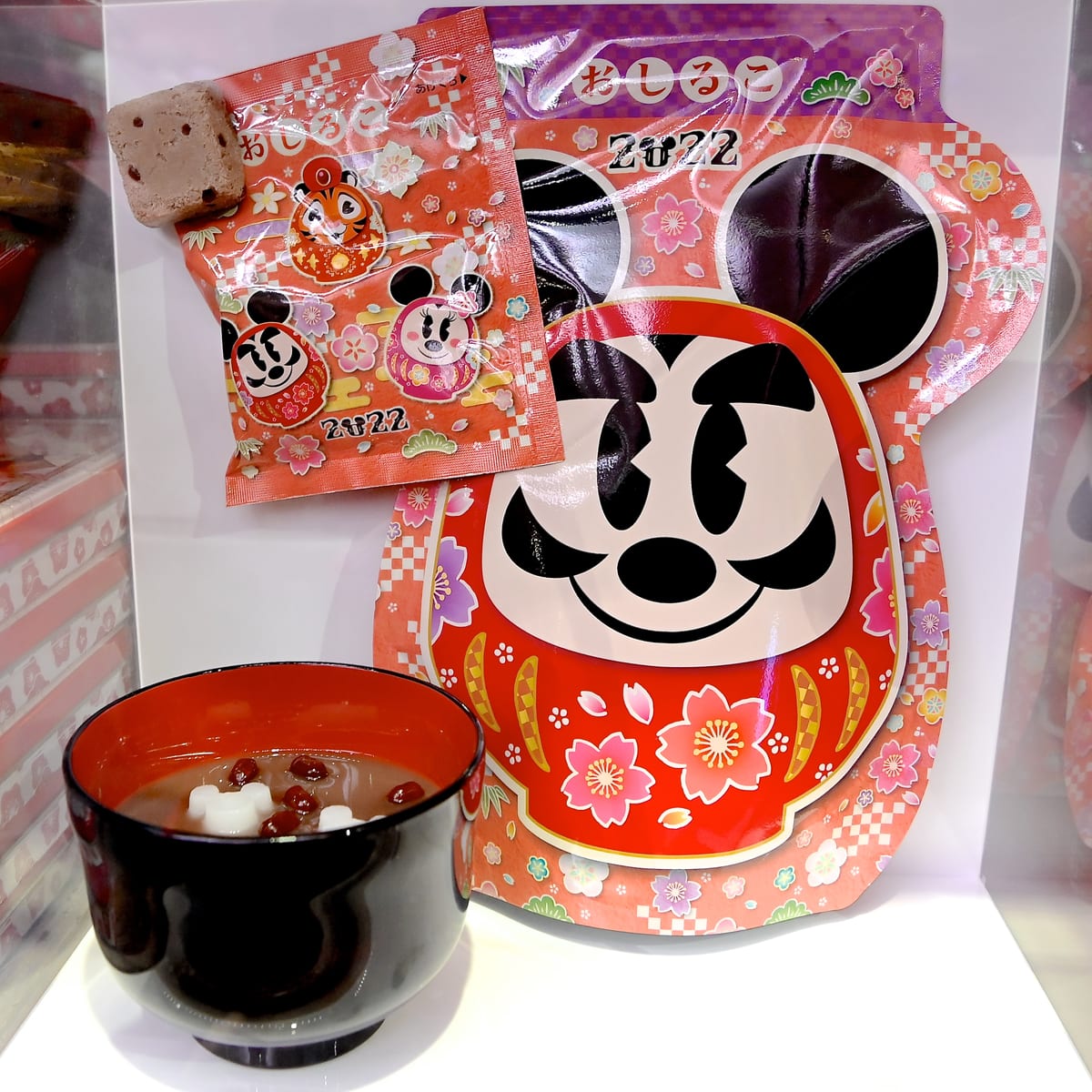 ミッキーだるまパッケージに入ったフリーズドライのおしるこ。
